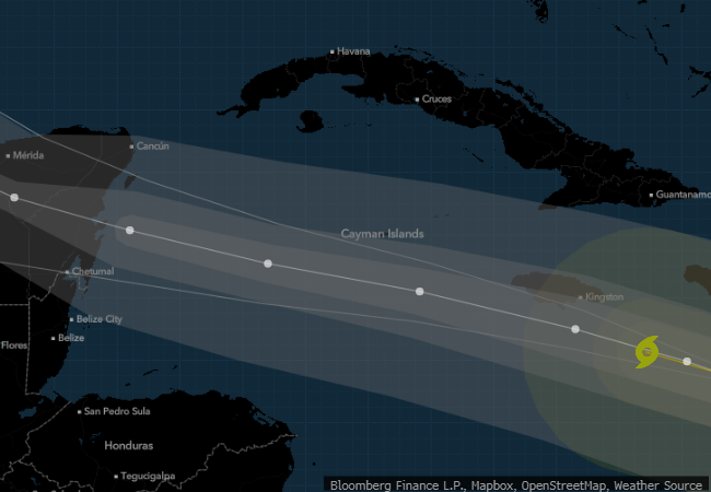 飓风贝瑞尔掠过开曼群岛,即将登陆墨西哥 - 彭博社