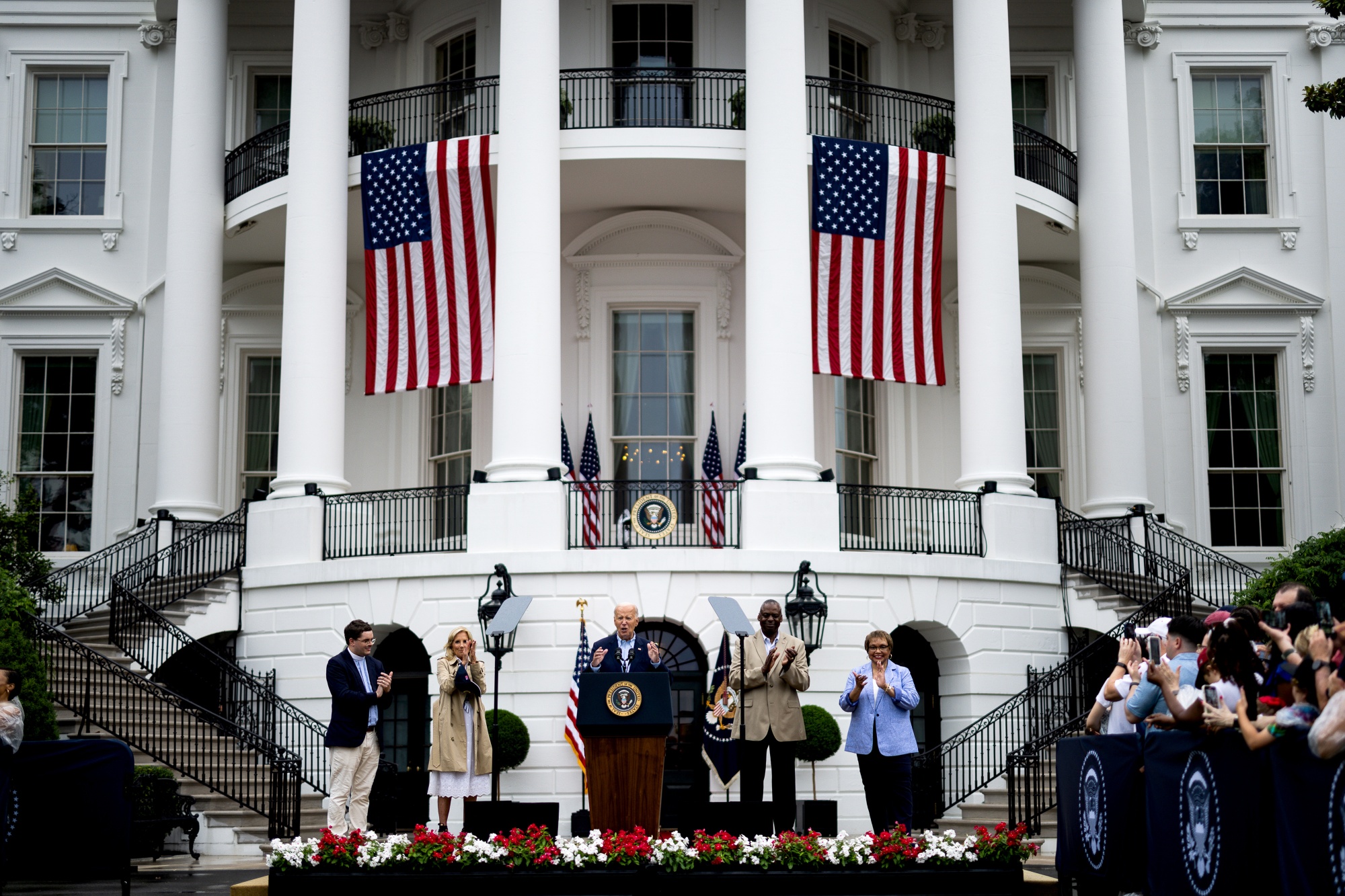 乔·拜登在白宫南草坪上,7月4日。摄影师:Tierney L. Cross/Bloomberg