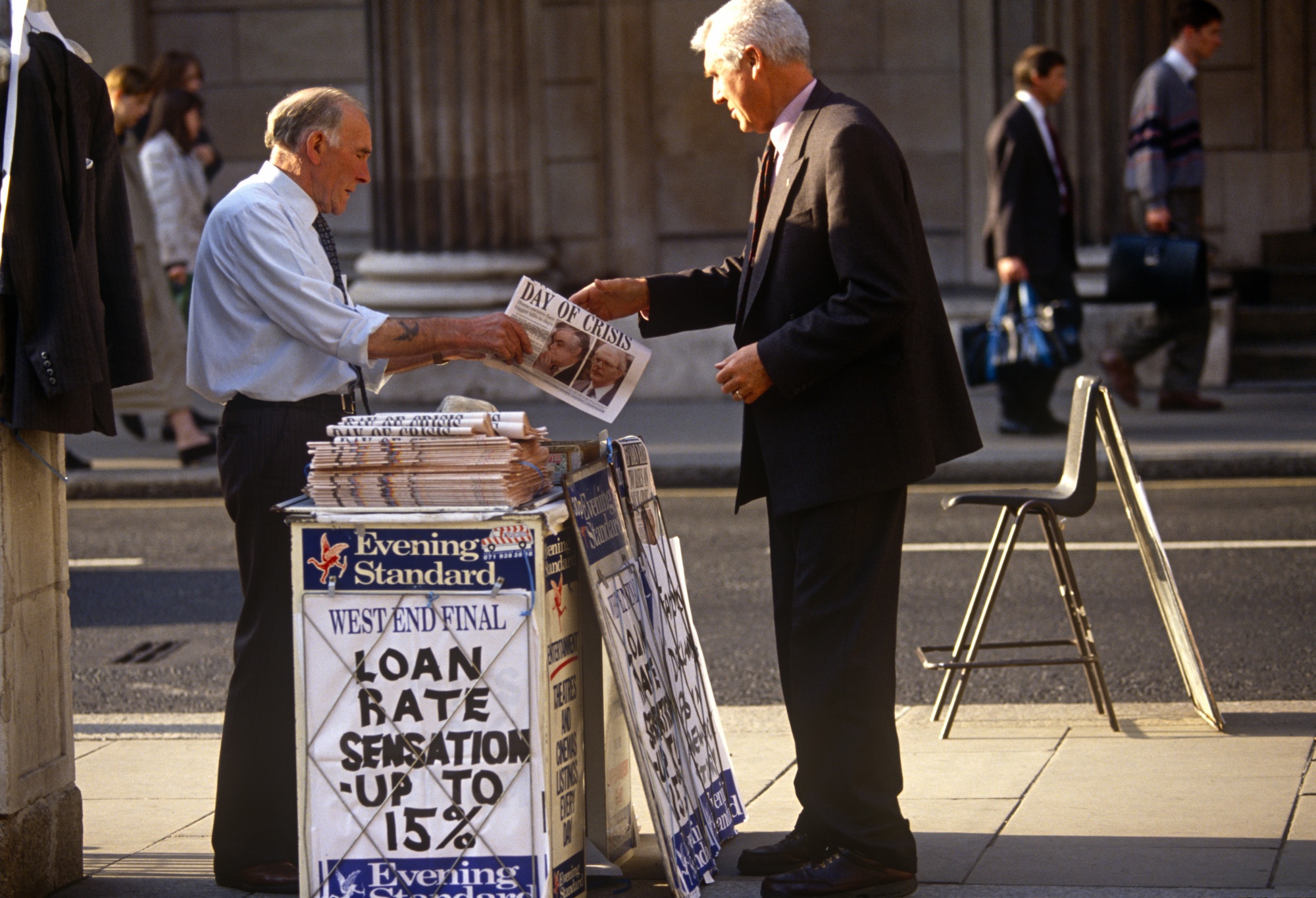 当时你是通过纸质媒体了解危机的。摄影师:理查德·贝克/Corbis历史/盖蒂图片社撒切尔夫人作为首相的最后一项行动之一是加入欧洲货币体系的汇率机制,使英镑与德国马克的交易保持在一个紧密的范围内。多年来,她的财政部长一直模仿德国货币。灾难发生在1992年9月的“黑色星期三”,因为货币市场意识到英镑被严重高估并抛售。在混乱的一天中,英格兰银行的目标利率从10%上升到15%,政府放弃并让英镑贬值。这引发了持续多年的繁荣增长,托尼·布莱尔在1997年当选后继续。黑色星期三注定了保守党的命运,也确保了英国不会走欧洲货币一体化的道路。