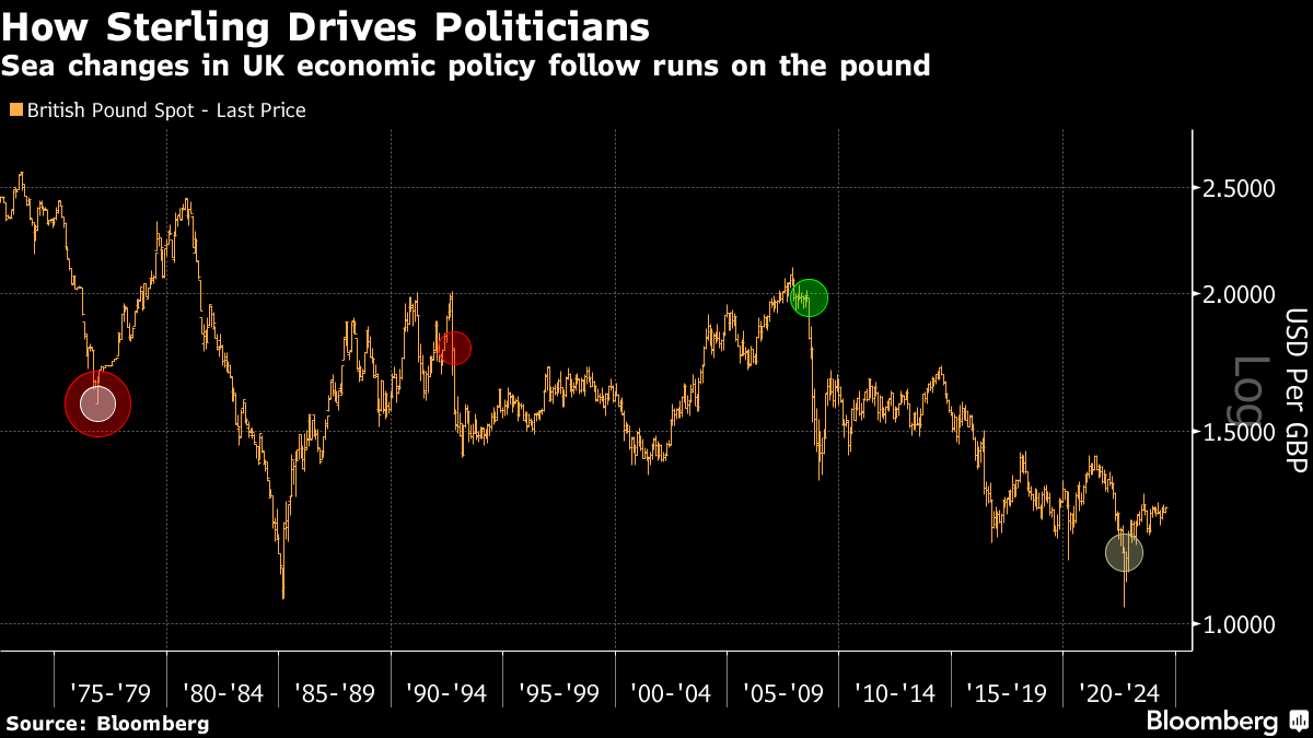 随着英国预算在疫情后陷入困境,新任首相利兹·特拉斯试图通过推出未经资金支持的减税措施来刺激经济。国债市场的反应如此强烈,以至于几天内所有减税措施不得不被撤销,特拉斯辞职。市场在表明再也没有扩张性财政政策的空间。两年后,里希·苏纳克将头条通胀率降至2%,但没有任何影响。工党将接管,他们已经接受了债券市场不会让他们做任何过于扩张的事情。金融历史上的重要时刻是21个月前的国债崩盘,而不是选举。