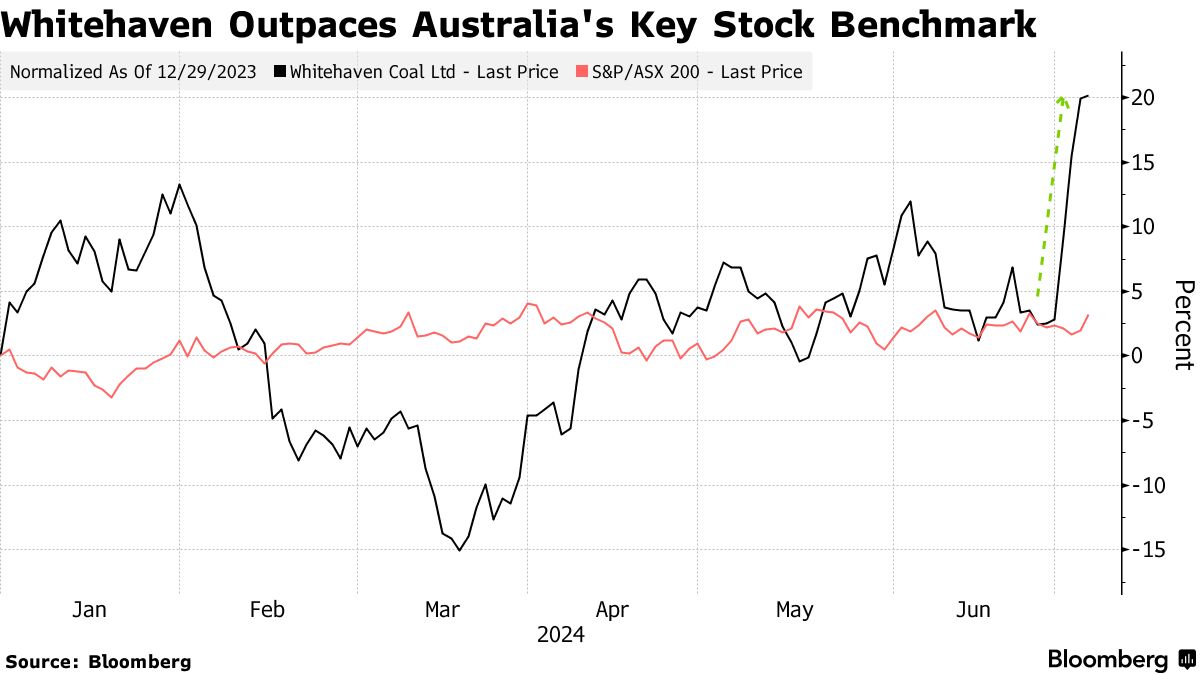 Whitehaven Coal Ltd。本周有望上涨17%,是自2022年10月以来最佳表现,悉尼上市的Coronado Global Resources Inc. 和Yancoal Australia Ltd.也有类似涨幅。新加坡焦煤期货本周早些时候触及两个月来的高点,此前澳大利亚英美煤业公司最大的冶金煤项目发生火灾导致生产停滞。
