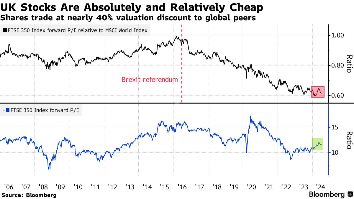 “我不会低估英国资产将因政府和政策稳定而受益的好处,” 瑞银环球财富管理经济学家迪恩·特纳说。“一直以来,人们都觉得英国存在政治不确定性,因此存在折扣。现在这种情况已经消除,投资者可以专注于一些更基本的吸引力。”