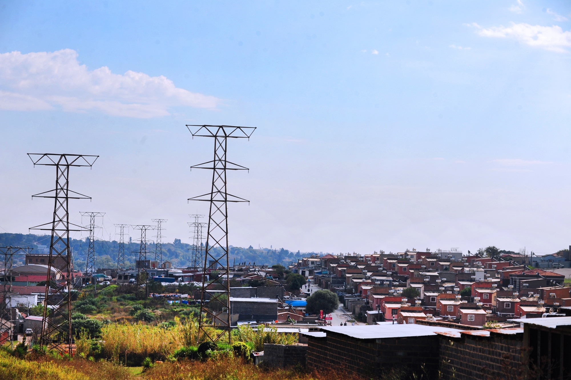 约翰内斯堡亚历山德拉郊区上方的电力塔。