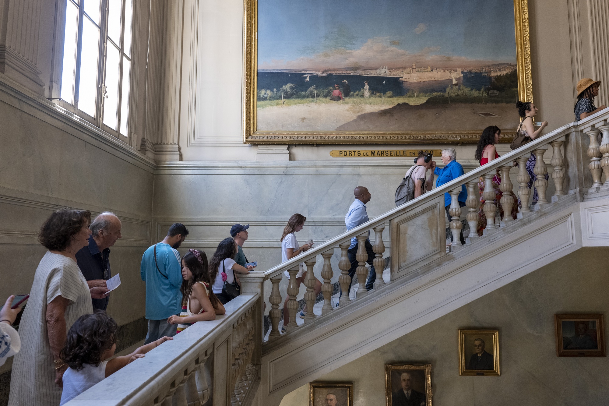 在6月30日的第一轮立法选举期间,选民在马赛的一个投票站。