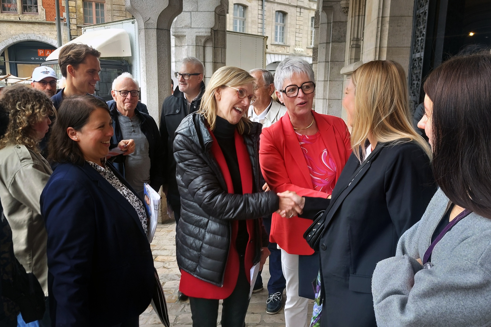 回到阿拉斯,候选人们在一个阴雨的周三外出散发传单。