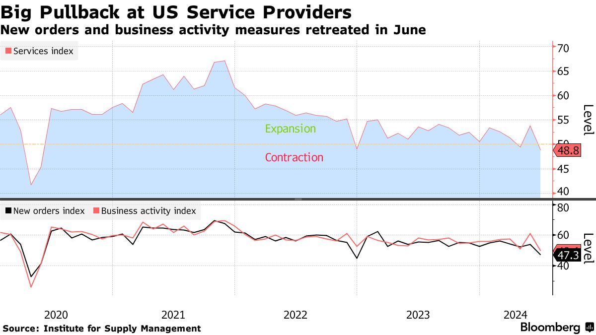 由于业务活动急剧减少和订单下降, 服务业在六月份以四年来最快的速度收缩。