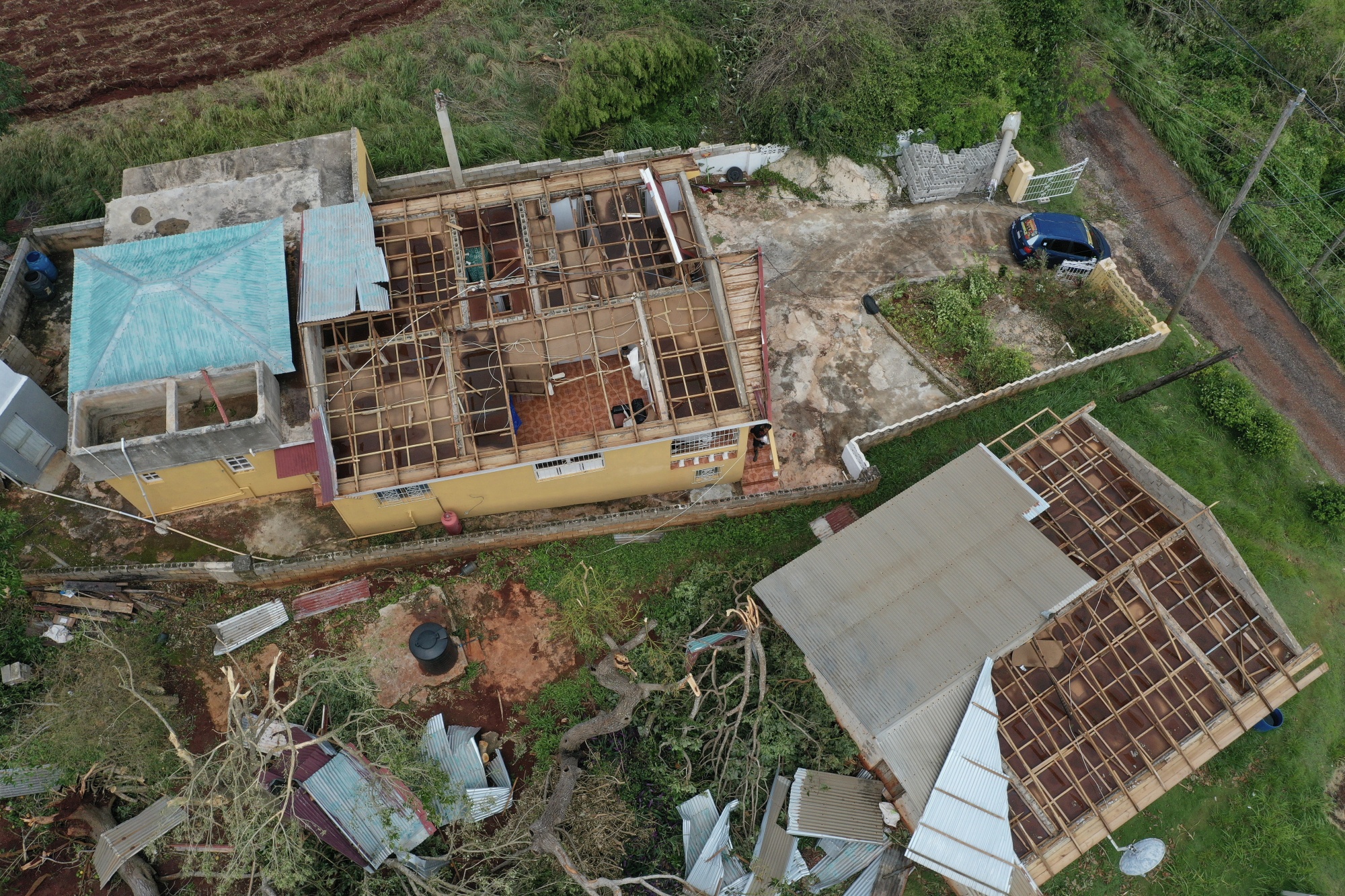 飓风贝瑞尔经过牙买加时,屋顶受损的房屋,7月5日。