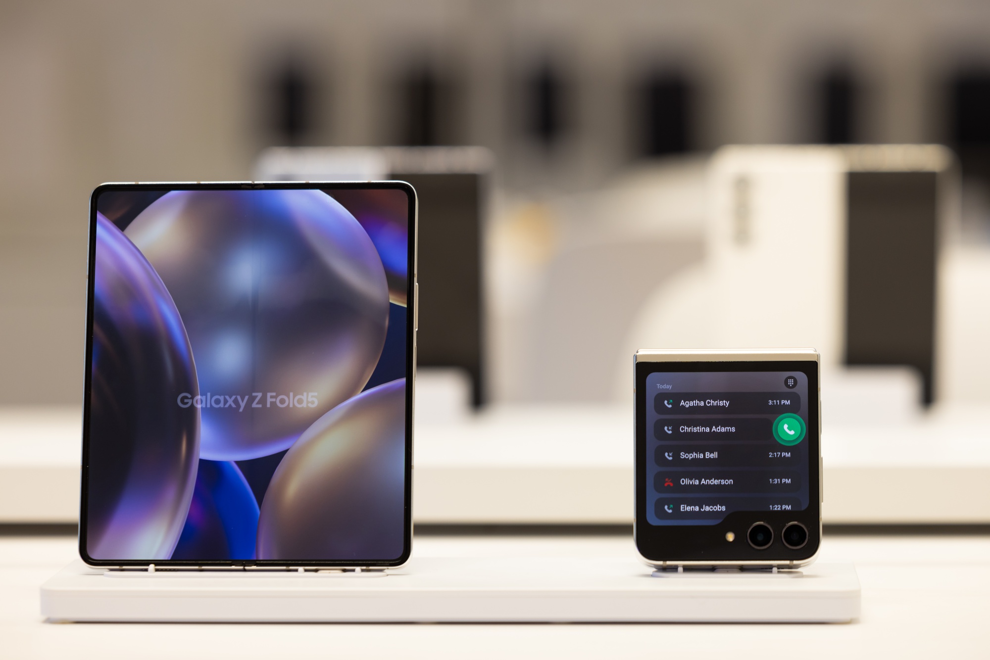 三星的可折叠设备。摄影师:SeongJoon Cho/Bloomberg**7月10日:三星将推出最新的可折叠手机、耳机和智能手表。**一如既往,三星将在宣布下半年设备方面领先于苹果。这一次,这家韩国科技巨头将在巴黎举办其Unpacked活动,就在该城市的奥运会开始前的几周。至于可以期待什么,公司应该会展示其可折叠手机、智能手表和耳机的新版本。需要关注的重点是,现在苹果已全面投入这一概念,AI将如何成为谈话的一部分。别忘了,三星今年早些时候已推出了搭载Google的Gemini技术的AI设备。。