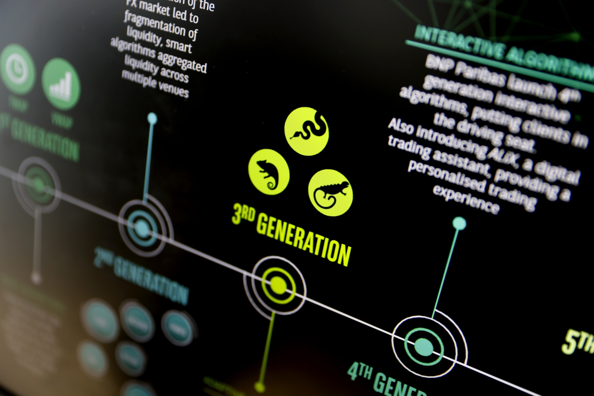 Viper、Iguana和Chameleon是该银行开发的算法的代号,旨在为数百名对其系统依赖的对冲基金经理和企业财务主管简化工作。这三个算法都存在于Rex内——一个以爬行动物为主题的交易工具,巩固了法国巴黎银行在每天7.5万亿美元的外汇市场中的优势。