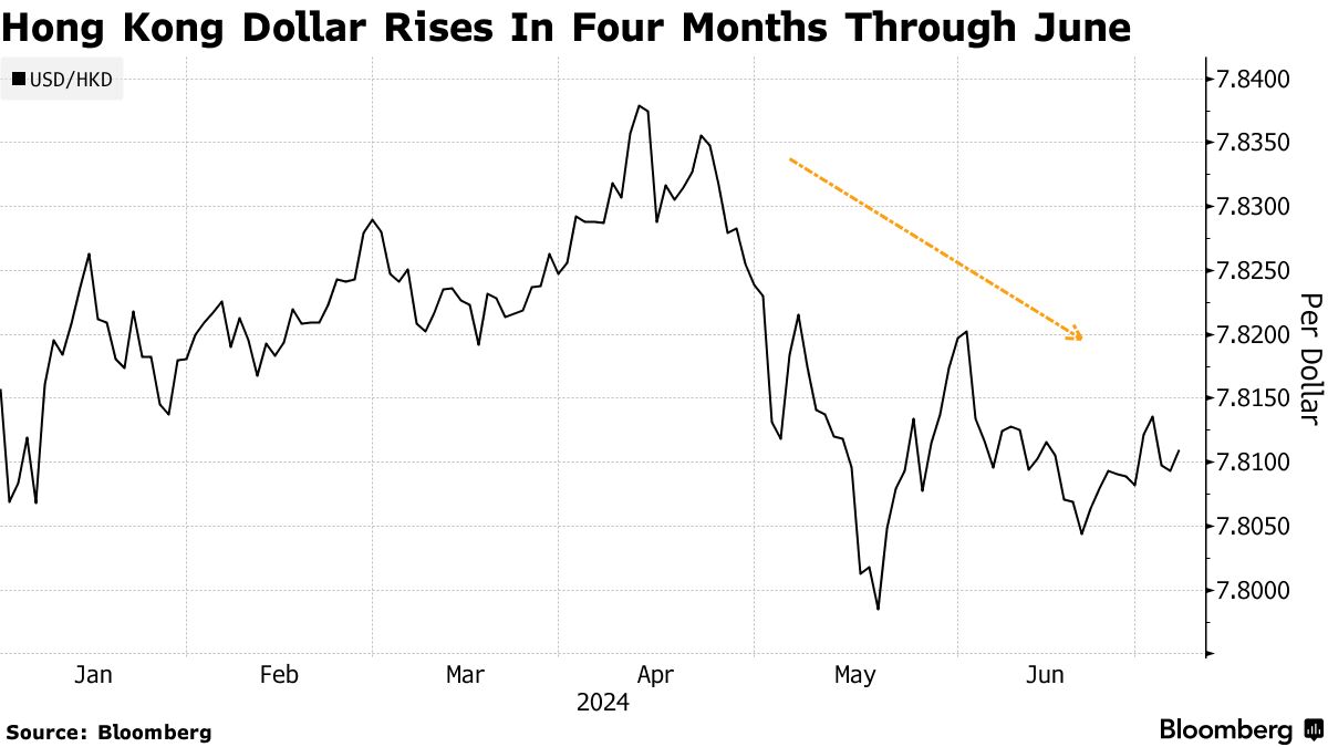 本地货币在截至6月的四个月中升值,这是自2020年以来最长的上涨周期。这种涨势可能会延续,因为今年7月是香港企业支付股息的旺季。