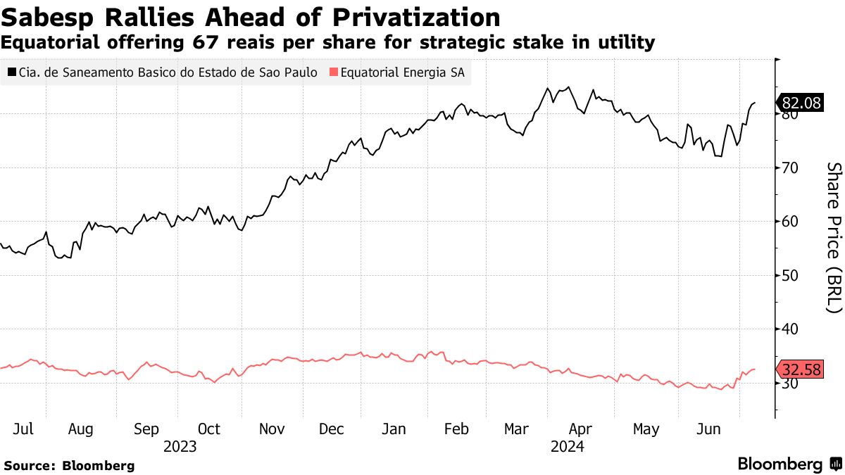 这家公用事业公司,正式名称为圣保罗州基础卫生公司,还为2500万人处理污水。Equatorial在该国北部拥有一项水务特许经营的单一投资,提供67雷亚尔每股的报价 — 比当前市值低22%以上。