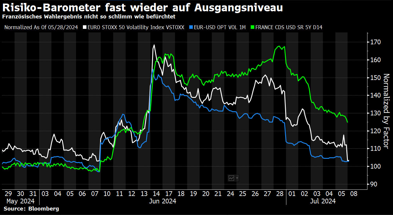 在法国议会选举前,各种不同的情景对市场来说都不是特别讨人喜欢。但在避免了极右翼政府并且马克龙派系没有被完全抛弃之后,对于投资者来说,这个结果大概是最不糟糕的。