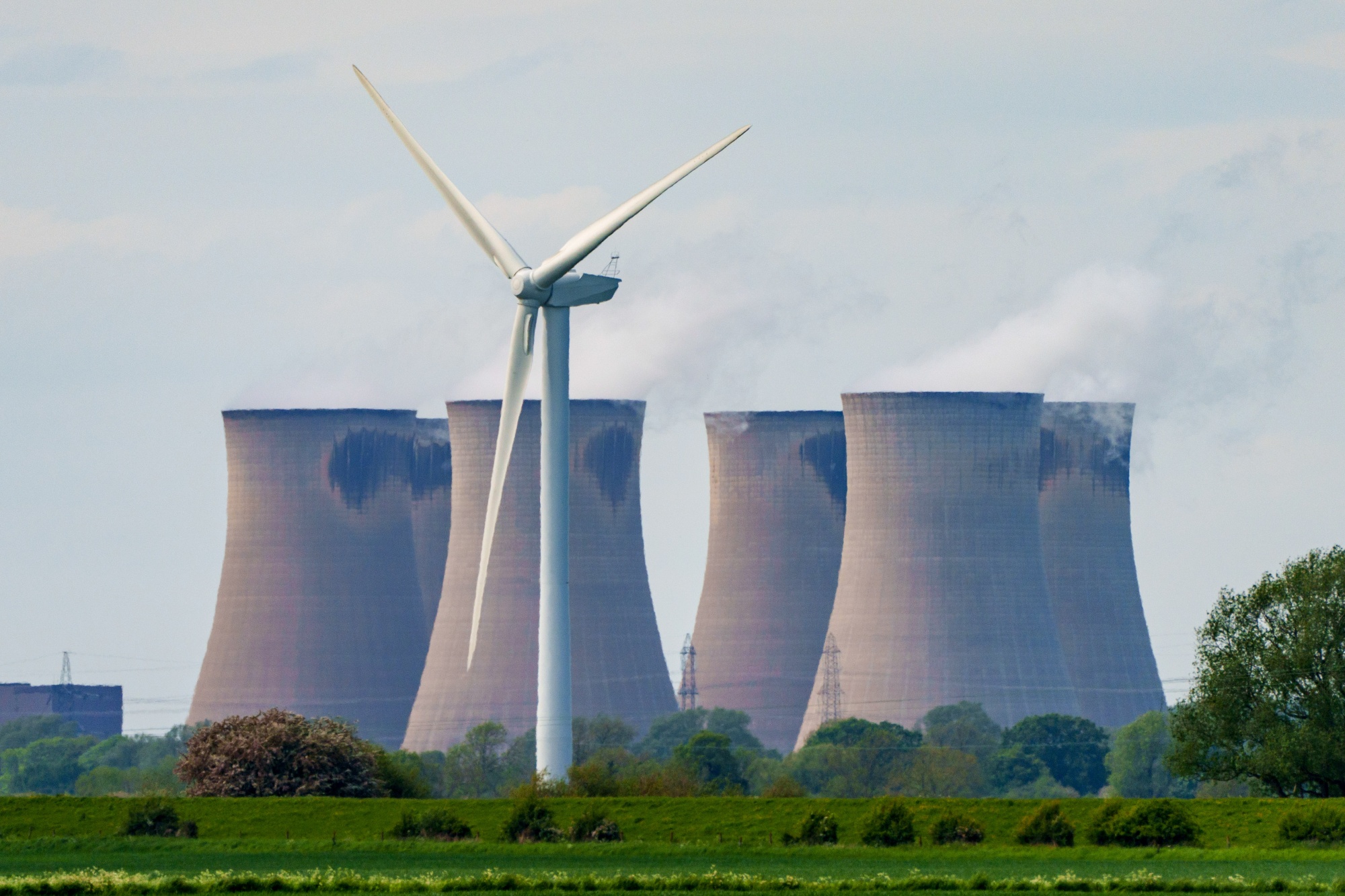 英国德拉克斯集团电站附近的风力涡轮机。英国新的工党政府的目标是在四年内实现无化石能源系统。