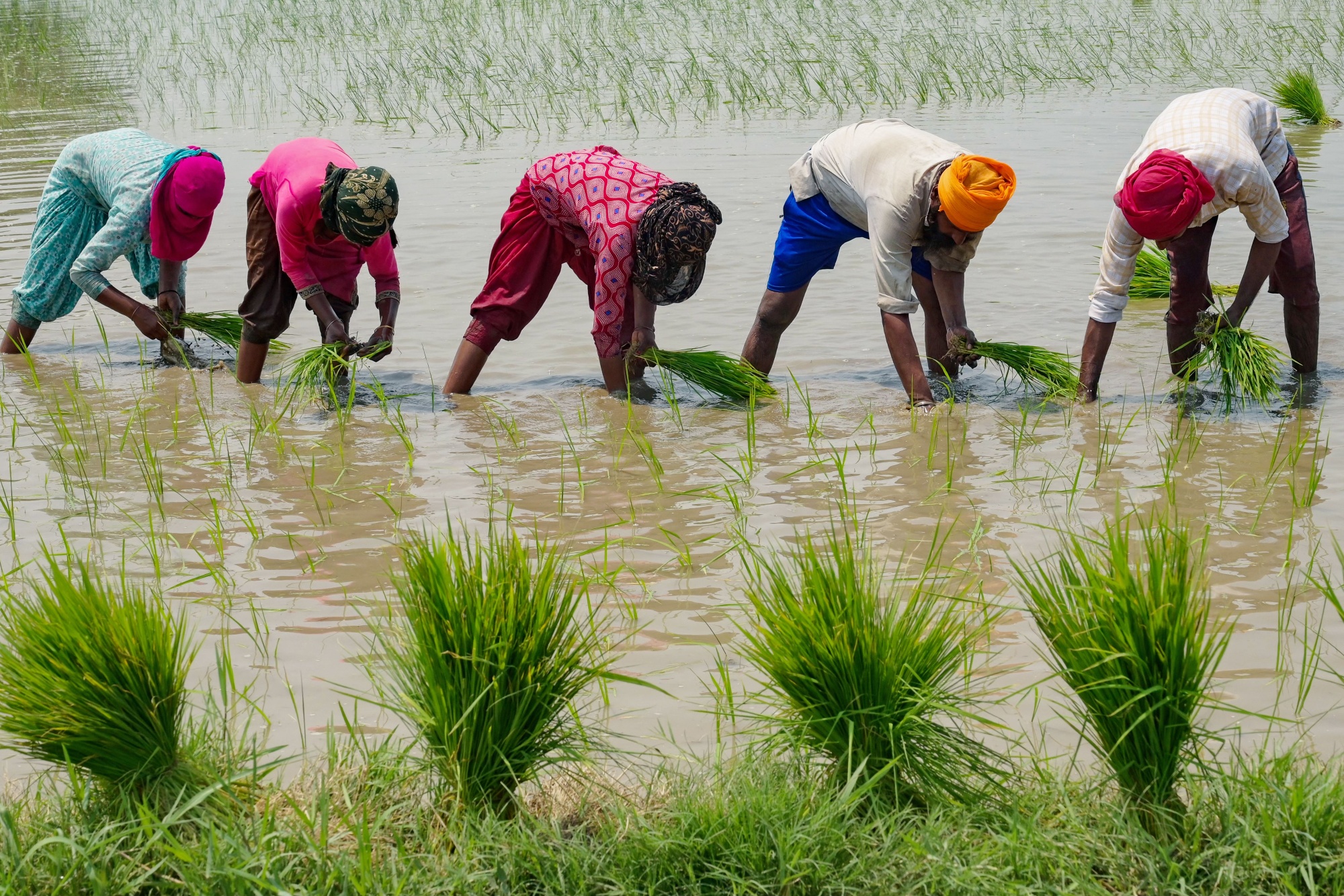 印度农民正在播种下一个收成的主要稻谷作物,随着季风的开始。播种将在7月达到高峰,谷物将在9月下旬收割。