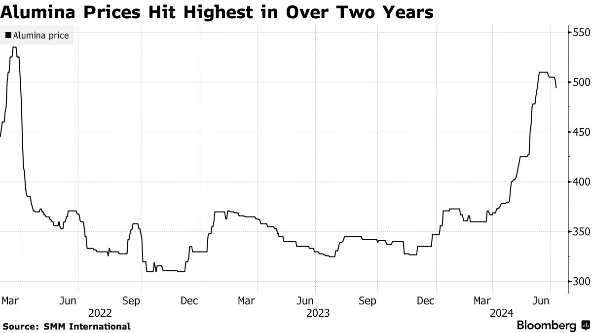 中国氧化铝生产商在价格飙升后增加产量 - 彭博社