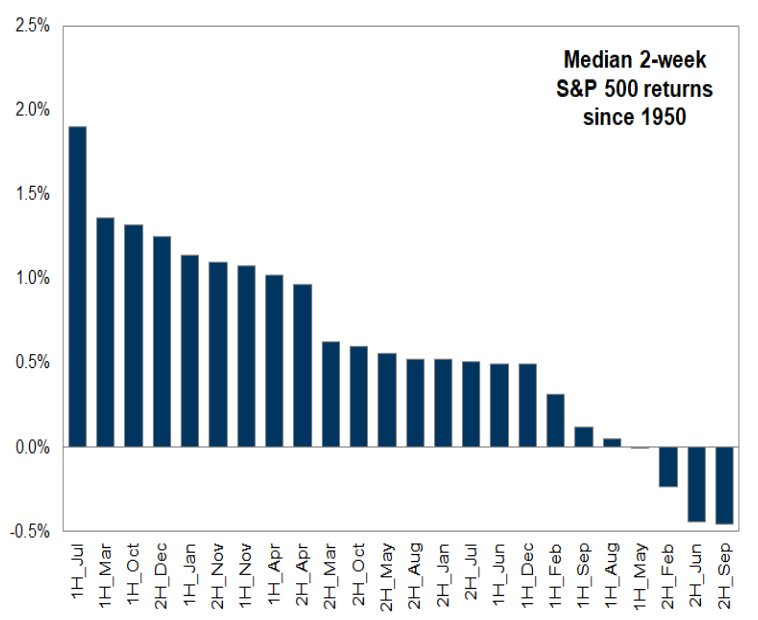 他对追溯到1928年的数据进行的分析显示,标普500指数在7月中旬达到“局部高点”,然后在8月初通常迎来一年中第五糟糕的两周时期。