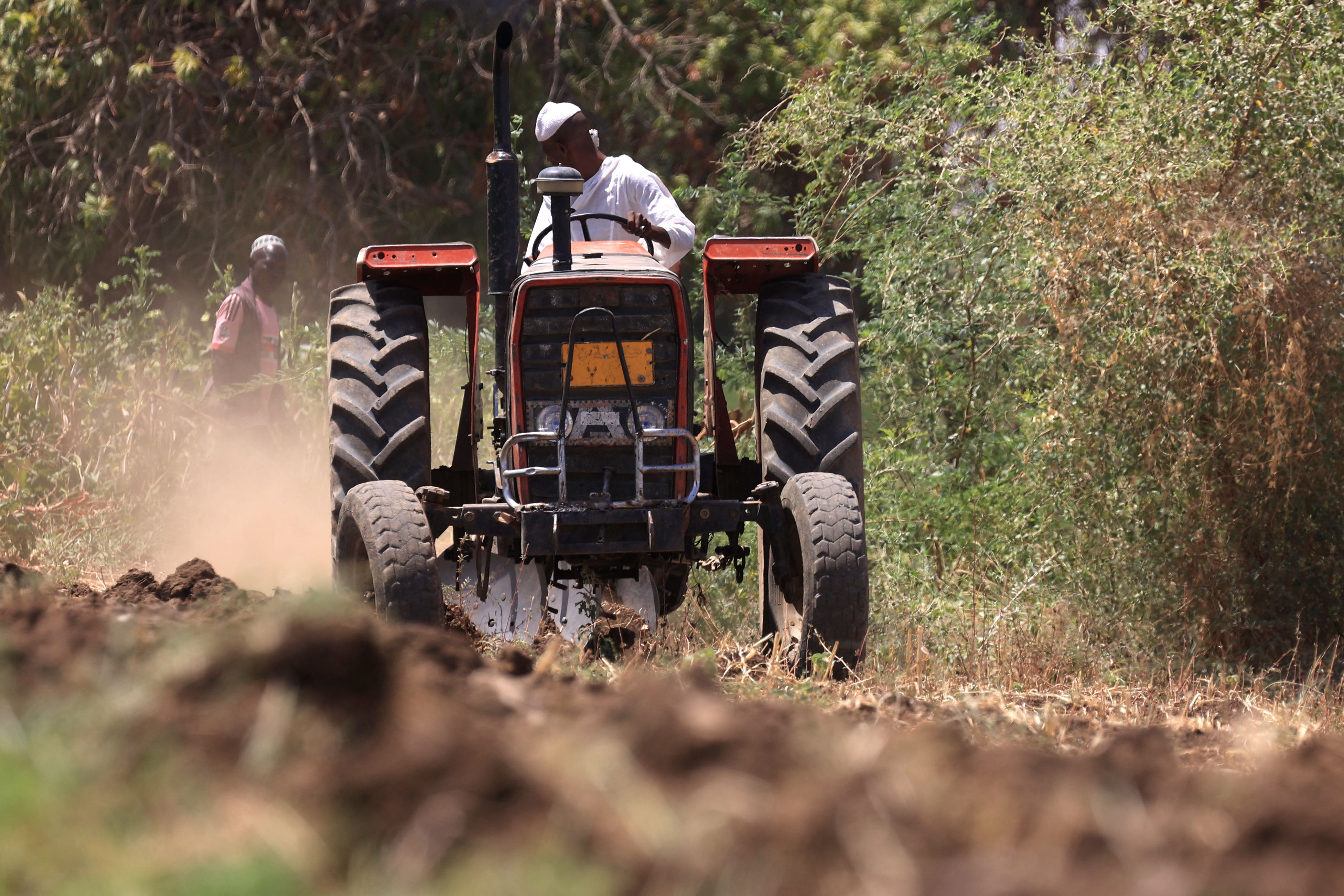 一名农民在苏丹的Shendi市驾驶拖拉机耕地。