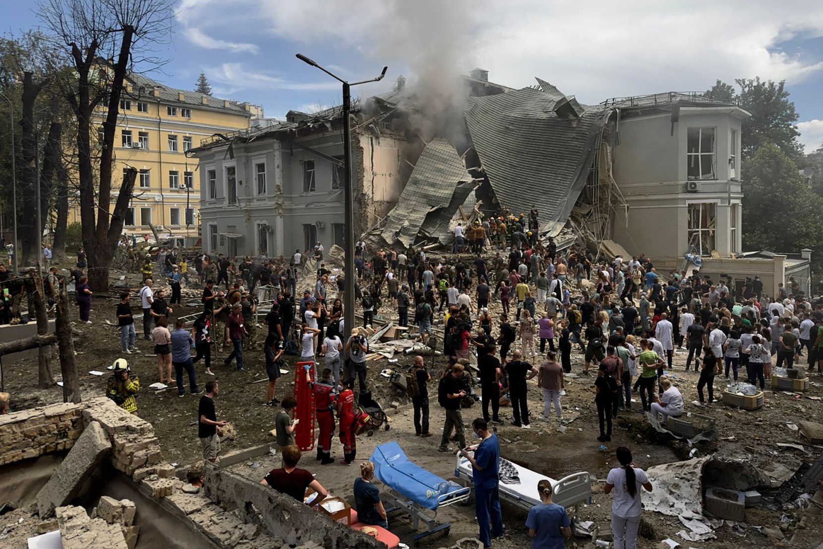 俄罗斯对Okhmatdyt儿童医院的袭击现场。摄影师:Roman Pilipey/AFP/Getty Images### 全球必读