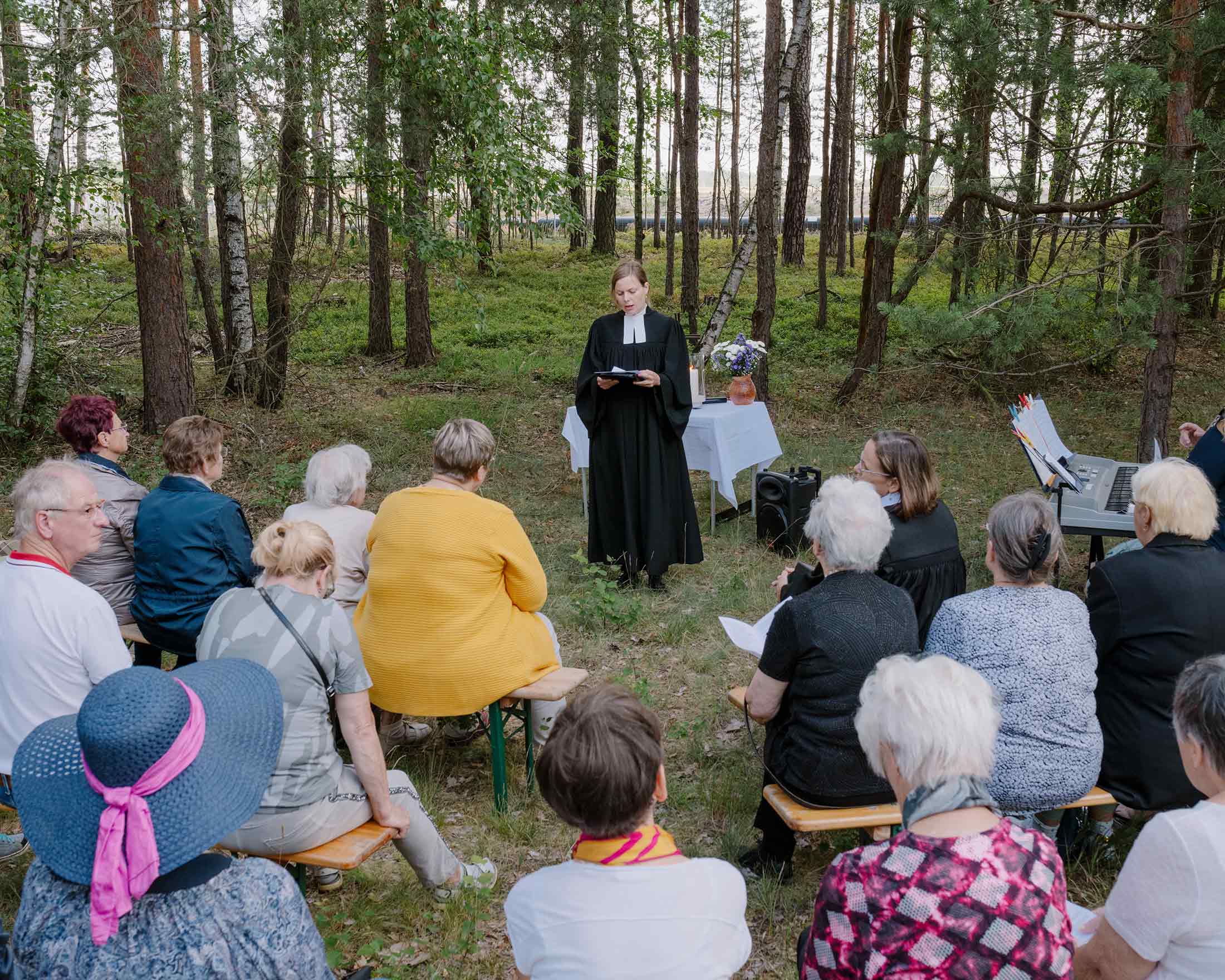在褐煤矿附近最后一片树林中的户外教堂服务。摄影师:丹尼尔·查塔德,彭博市场### 更多来自彭博