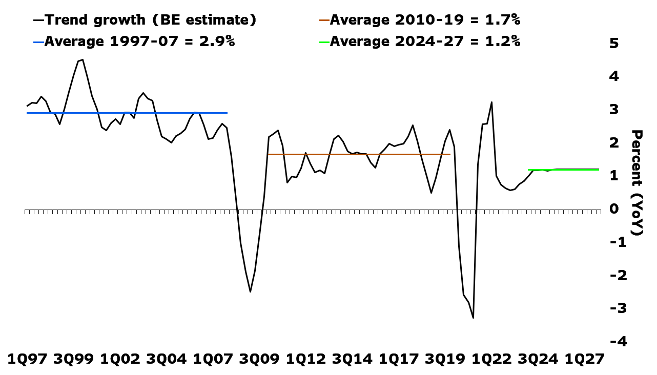 经济学家们认为,英国经济的中期路径不太可能出现“戏剧性”变化。但他们承认,工党政府的政策“对我们的观点构成上行风险。”