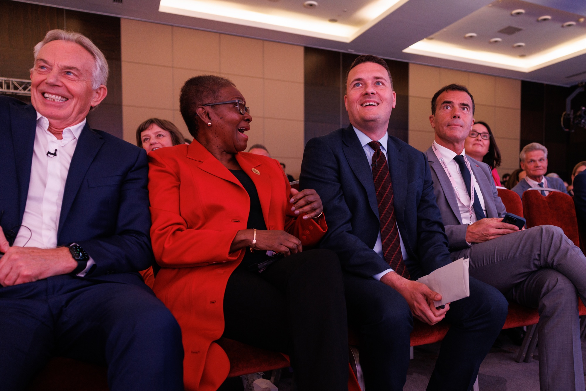 7月9日在伦敦举行的“英国未来”会议上,Wes Streeting(右二)和托尼·布莱尔(左)。摄影师:丹·基特伍德/盖蒂图片社“这不再仅仅是一个公共服务部门,而是一个经济增长部门,”他说。“我们将帮助您实现增长的使命。”