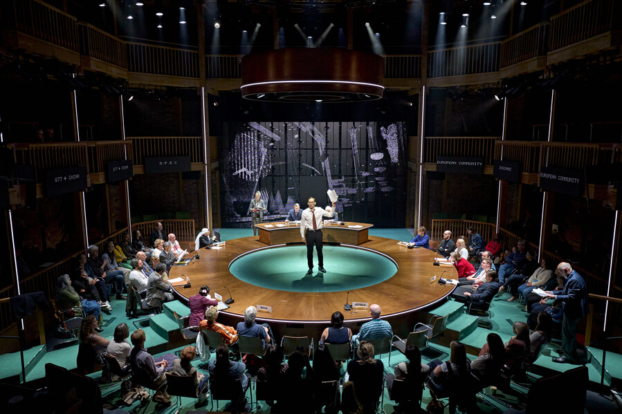 我们本不应该担心。京都接近三个小时,但节奏紧凑。观众坐在一个兼作谈判桌的舞台周围,被推入辩论的热潮中,代表们就如何描述他们对气候变化的集体责任的确切措辞进行争论。