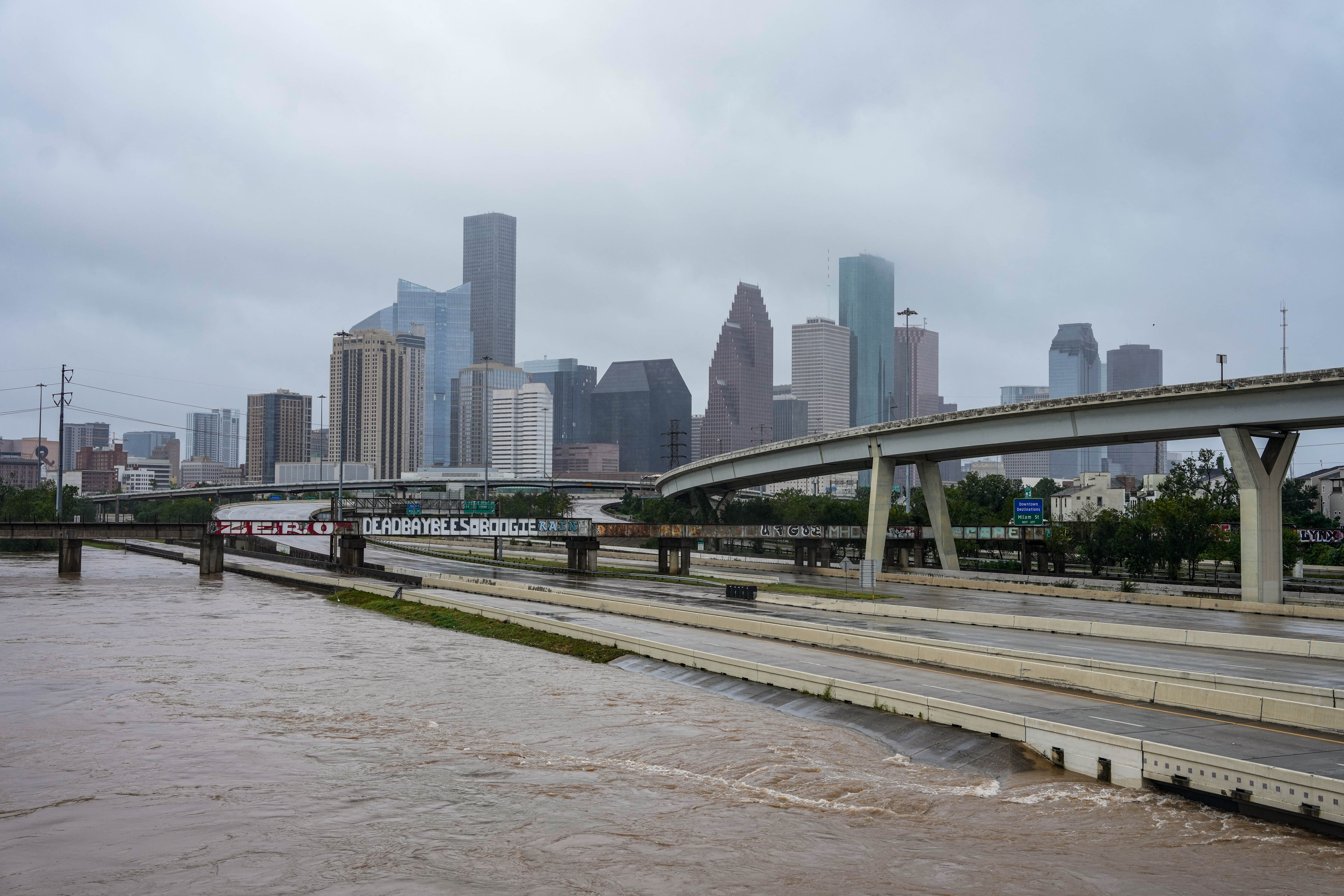 飓风贝瑞尔登陆后,休斯敦I-10高速公路旁的洪水,7月8日。