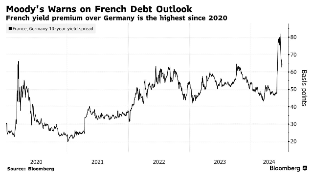 - 穆迪警告法国要警醒,警告称其主权评级面临风险,如果财政状况进一步恶化。