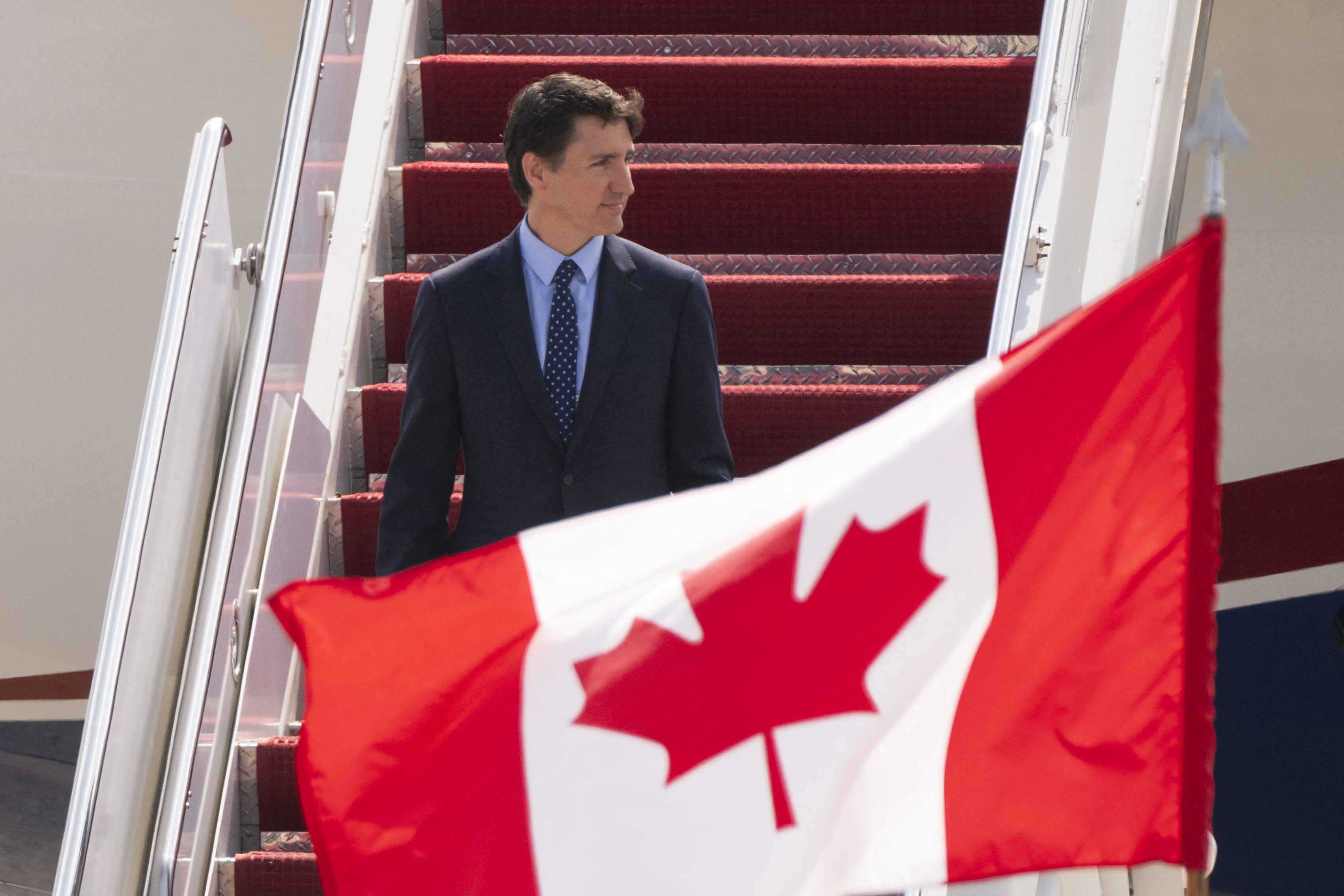 贾斯汀·特鲁多在2024年7月8日马里兰州安德鲁斯联合基地抵达,准备参加北约峰会。