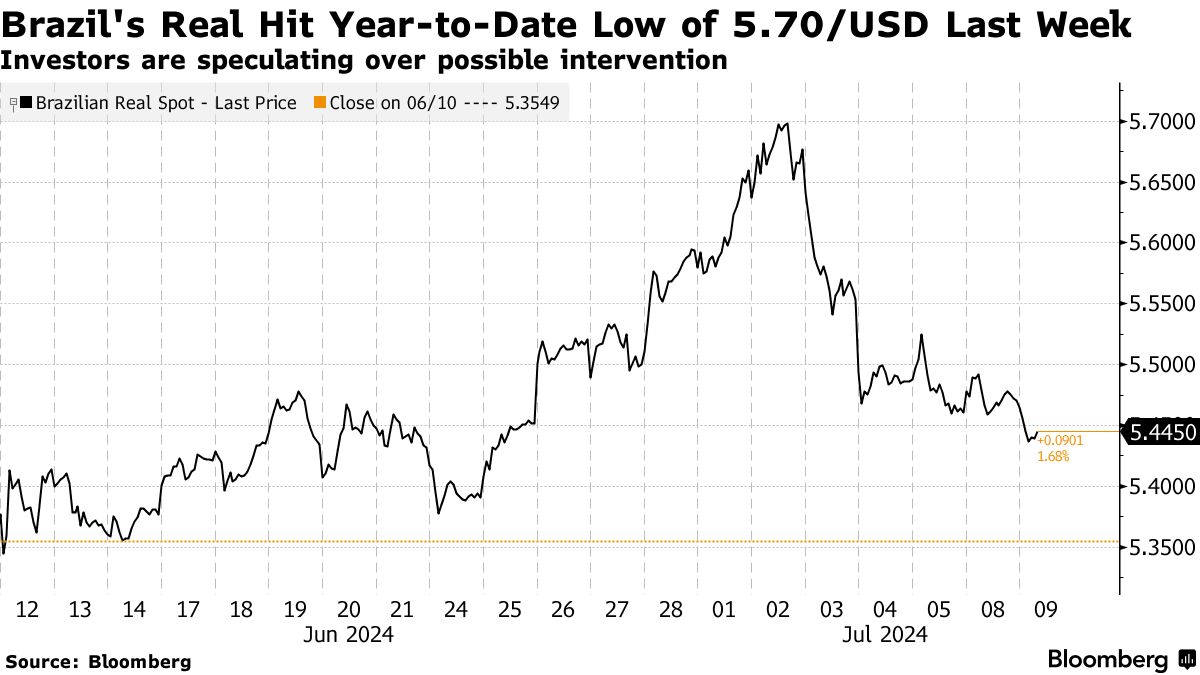 巴西雷亚尔今年以来已经下跌超过10%,是新兴市场中仅次于阿根廷比索的最大跌幅。随着货币上周急剧贬值,卢拉的盟友呼吁中央银行干预。