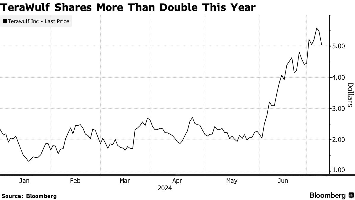 TeraWulf的股价今年已经翻了一番多。自另一家比特币矿工Core Scientific与人工智能初创公司CoreWeave签署了价值35亿美元的托管合同以来,该股票已经飙升。周二,TeraWulf的股价下跌了8.4%,跌至约5美元。