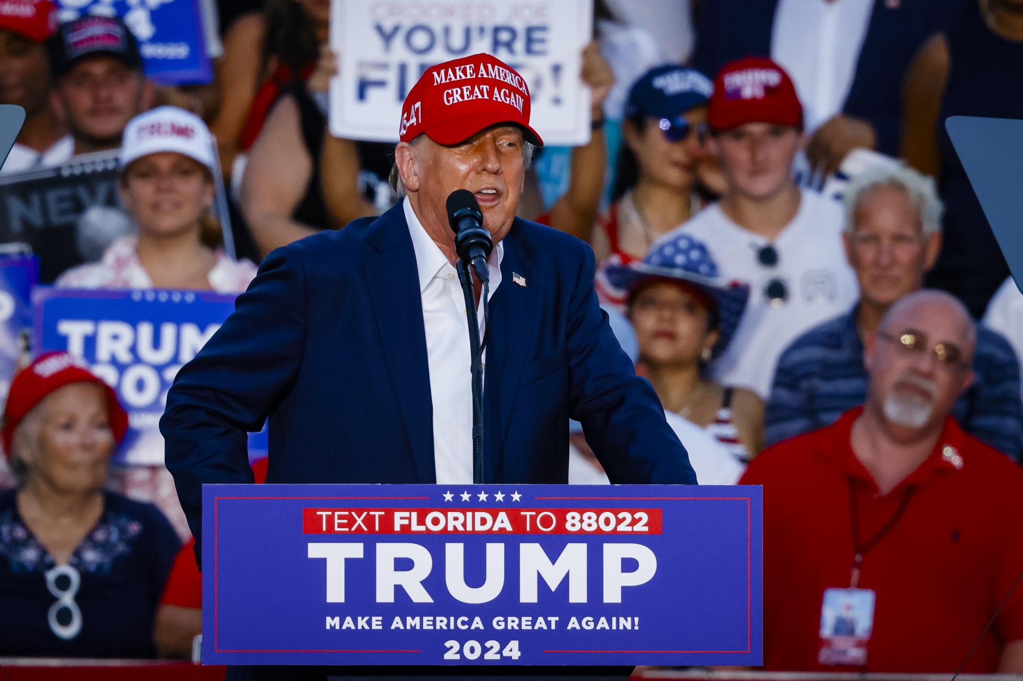 摄影师:Melissa Phillip/Hearst Newspapers唐纳德·特朗普在迈阿密的集会中注入了真人秀级别的戏剧性,一再暗示 — 但没有宣布 — 佛罗里达参议员马可·鲁比奥将成为他的竞选搭档,以吸引最大的关注。