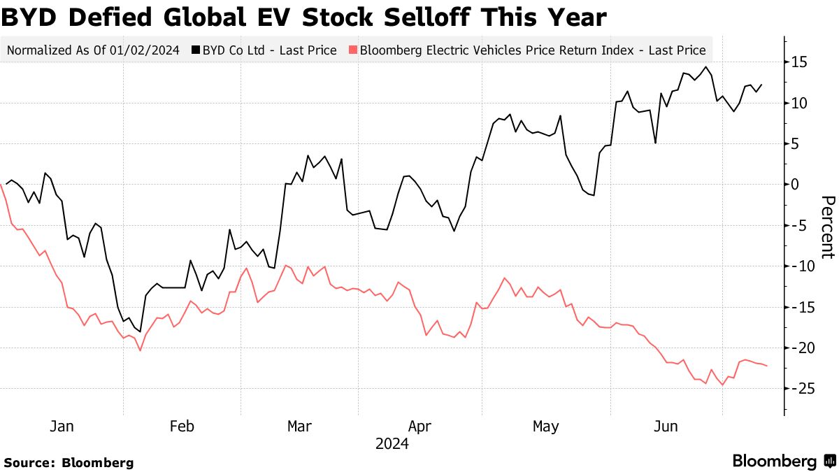 比亚迪一直专注于提升国际销售和本地化工作,同时在其中国本土市场进行激烈的价格战。尽管电动汽车股票大幅下跌,但其股价今年在香港上涨约12%,而其较小的竞争对手理想汽车和小鹏汽车的股价分别下跌了超过45%。