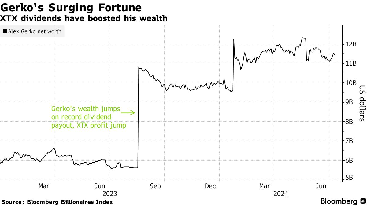 XTX自2020年初以来已向由俄罗斯出生、现为英国公民的Gerko控制的总部位于开曼群岛的实体支付了超过40亿美元的股息,根据彭博财富指数。