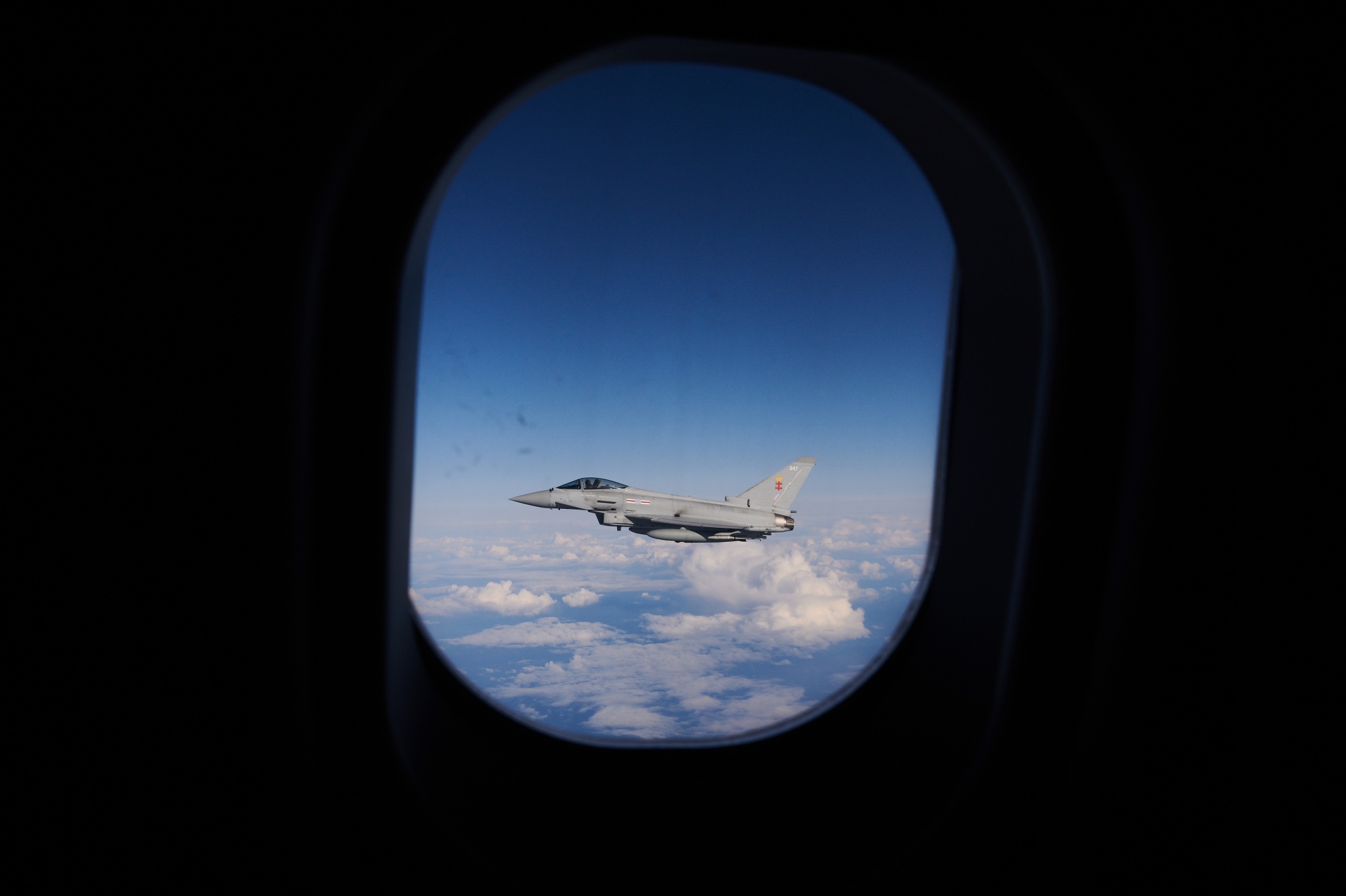 一架英国皇家空军台风战斗机在北海上空进行北约演习。
