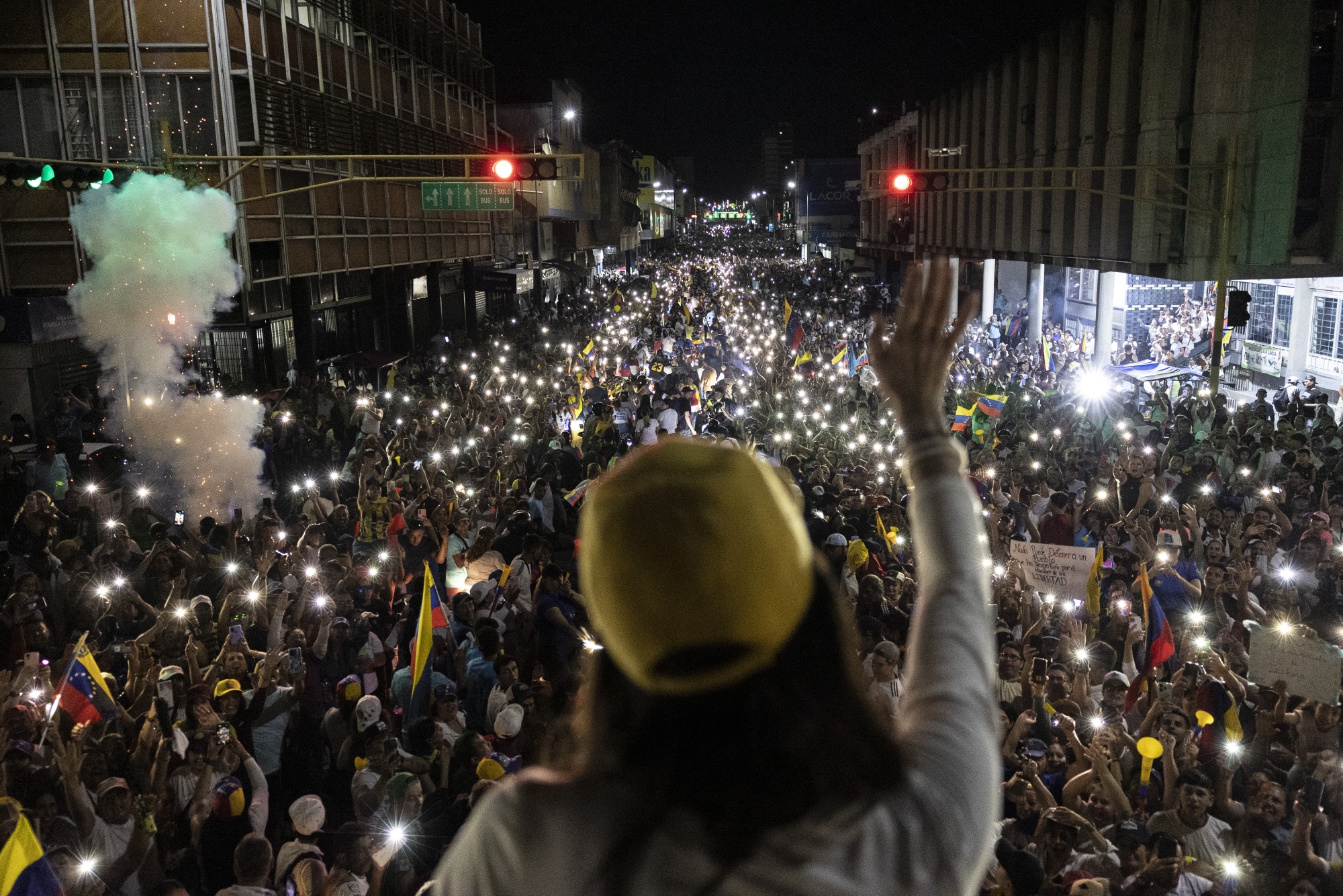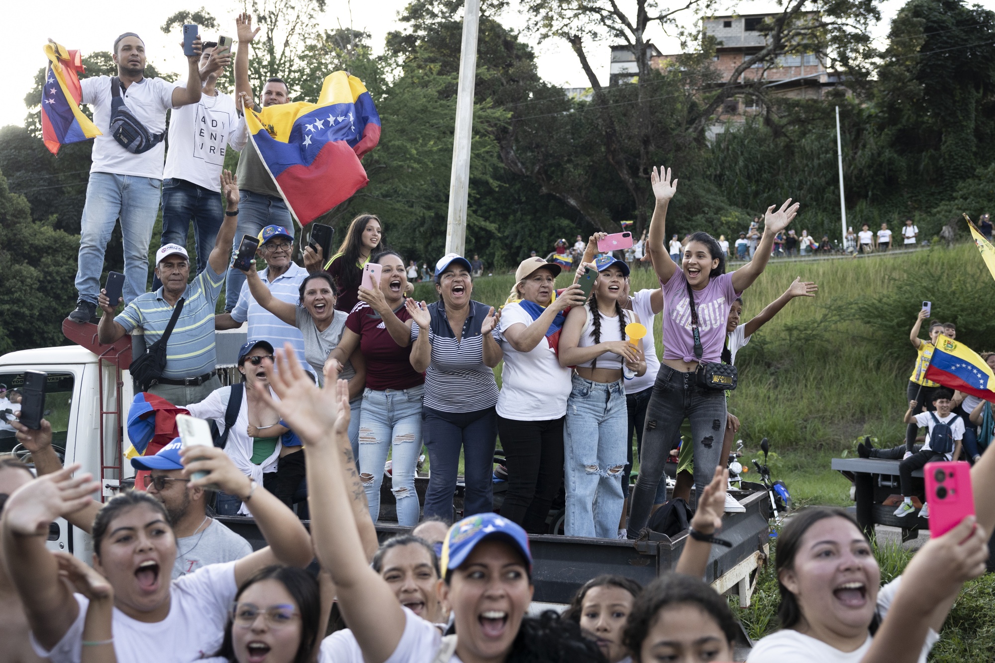 一些支持者等待数小时,看马查多的车队于6月28日穿过圣克里斯托瓦尔市中心。摄影师:Fabiola Ferrero阅读更多: 为什么委内瑞拉的选举这次可能真的很重要