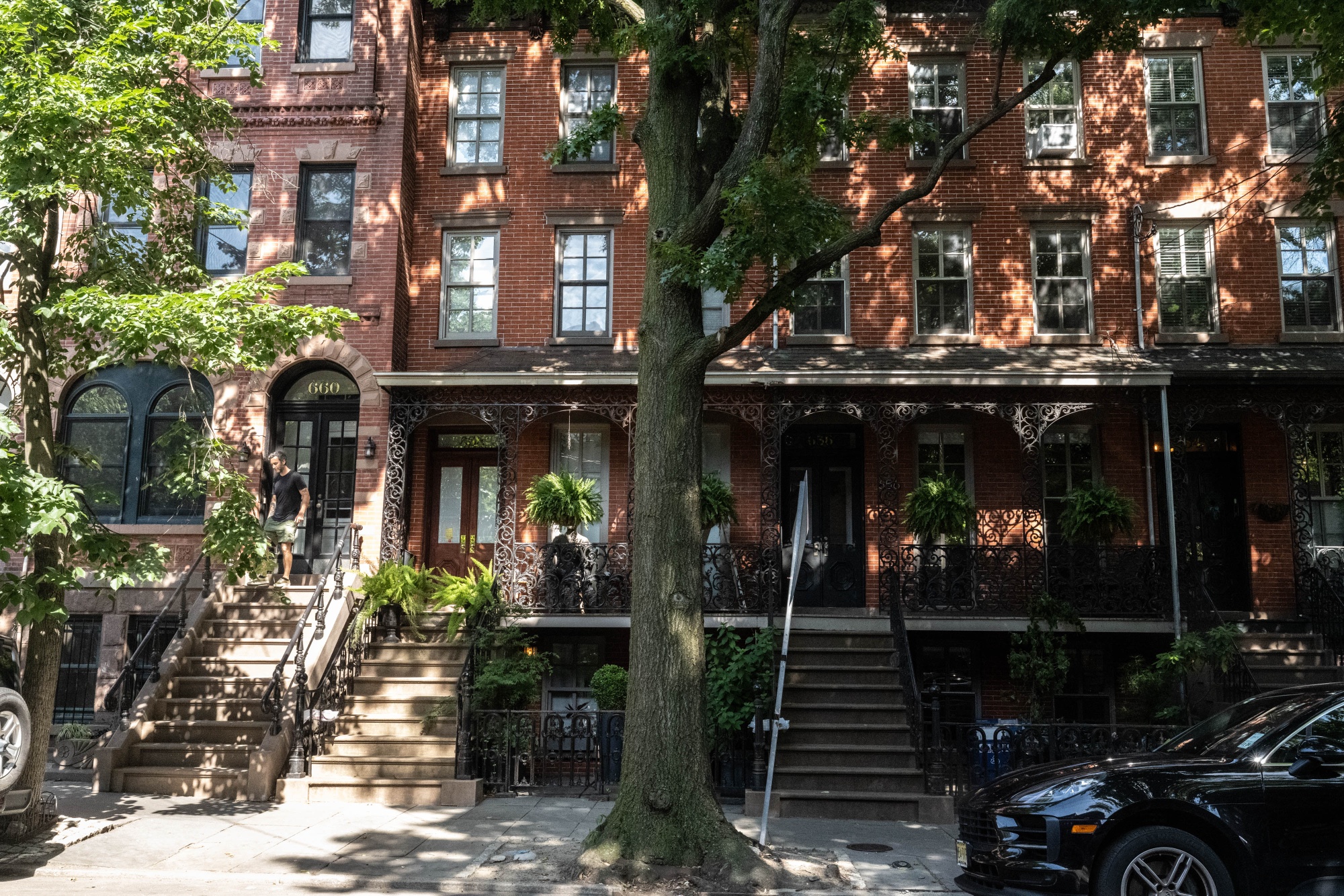 泽西城汉密尔顿公园附近的排屋。摄影师:Stephanie Keith/Bloomberg### 新泽西城