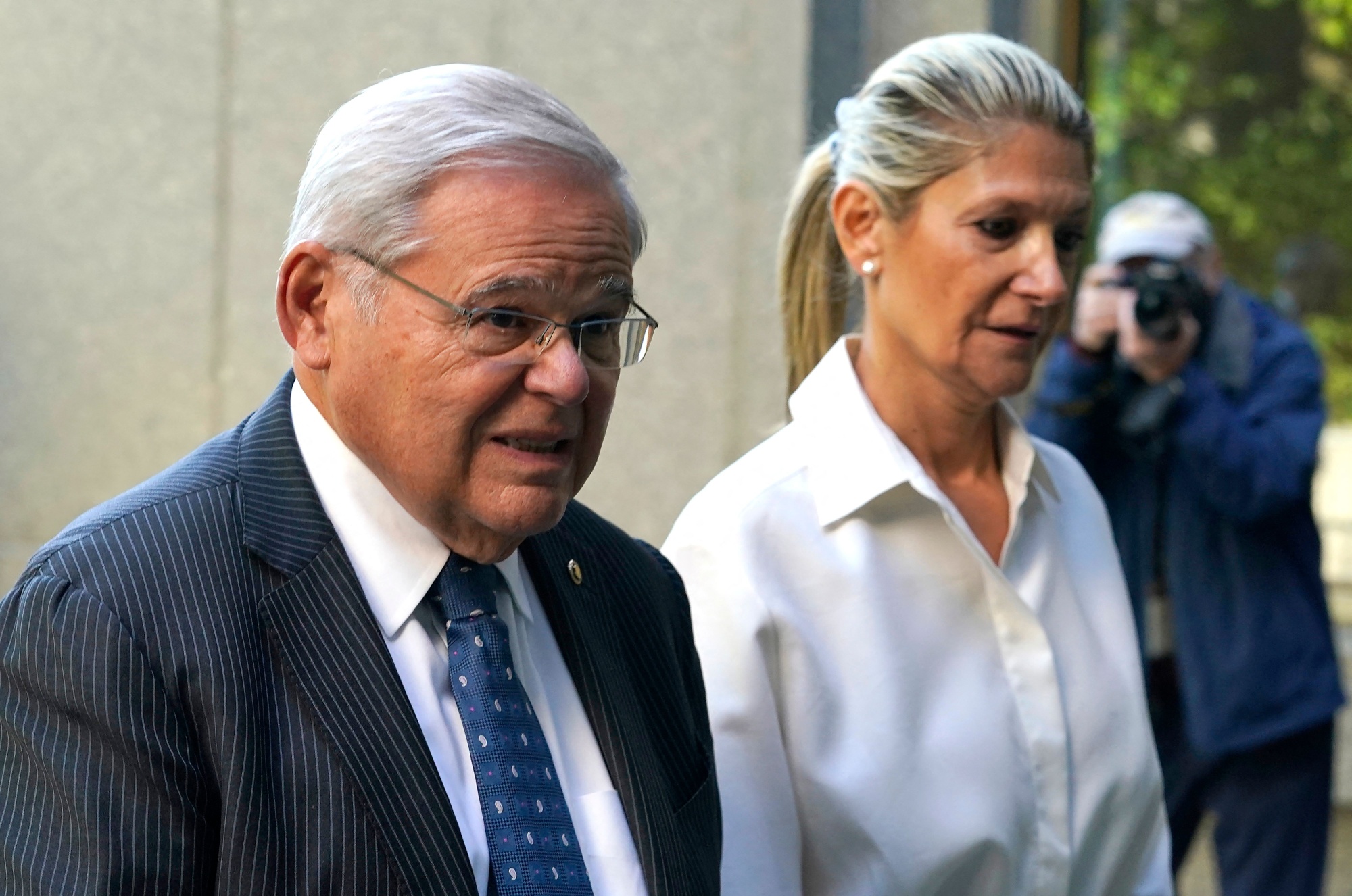 鲍勃·梅嫩德斯和娜丁·阿斯拉尼安于9月27日抵达纽约市南区美国纽约地方法院。