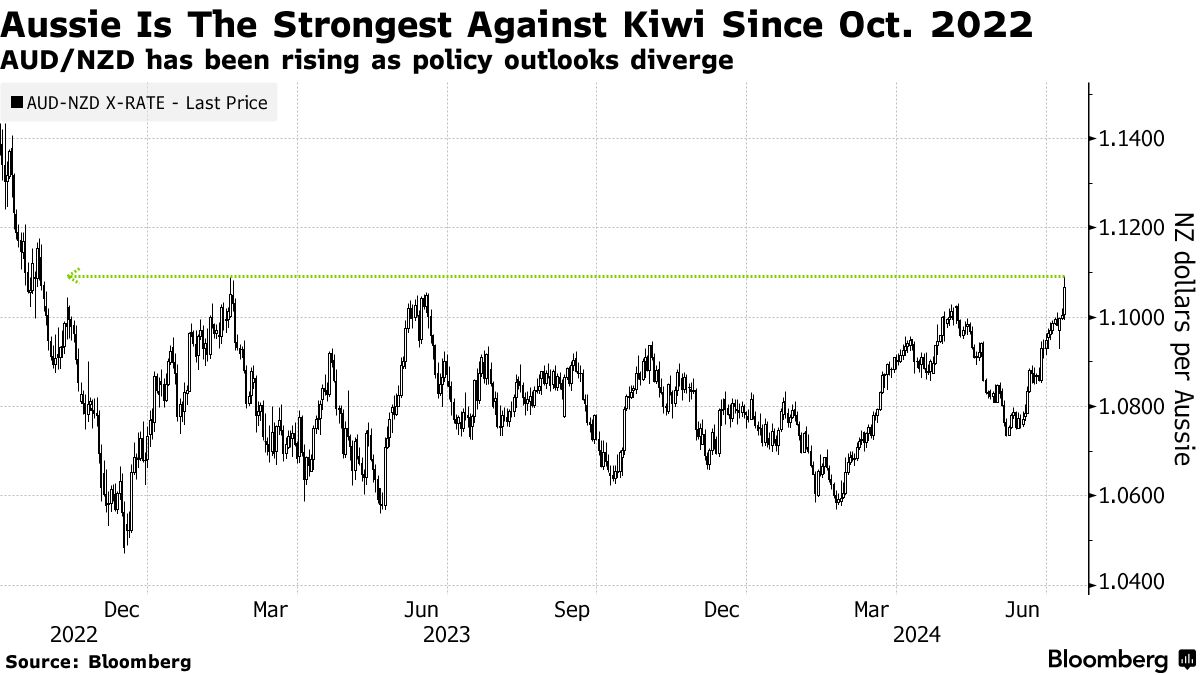新西兰储备银行在周三出人意料地打开了降息的大门,其更为严格的政策立场抑制了整体经济的需求,并增强了通胀将回归目标的信心。相比之下,交易员认为澳大利亚储备银行在8月6日的下次决策中可能会加息,因为通胀比预期中更为顽固。