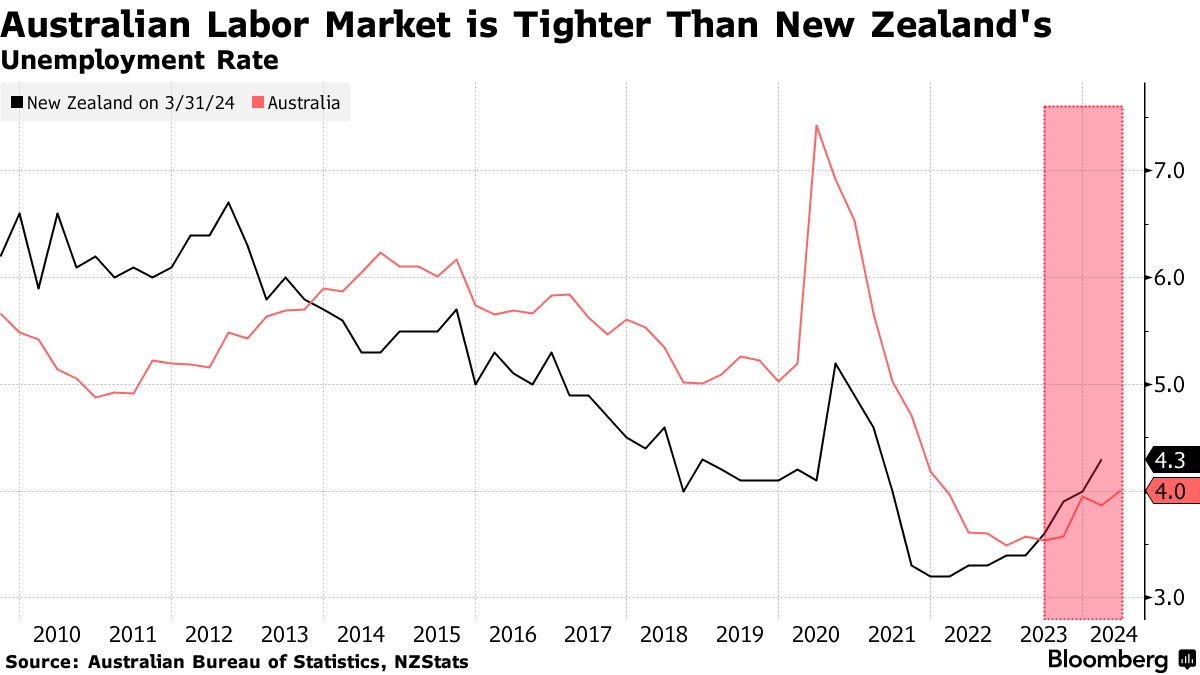 尽管新西兰的失业率仍然很低,但在过去一年中上升相对较快,这表明货币政策在那里产生了更大的影响。
