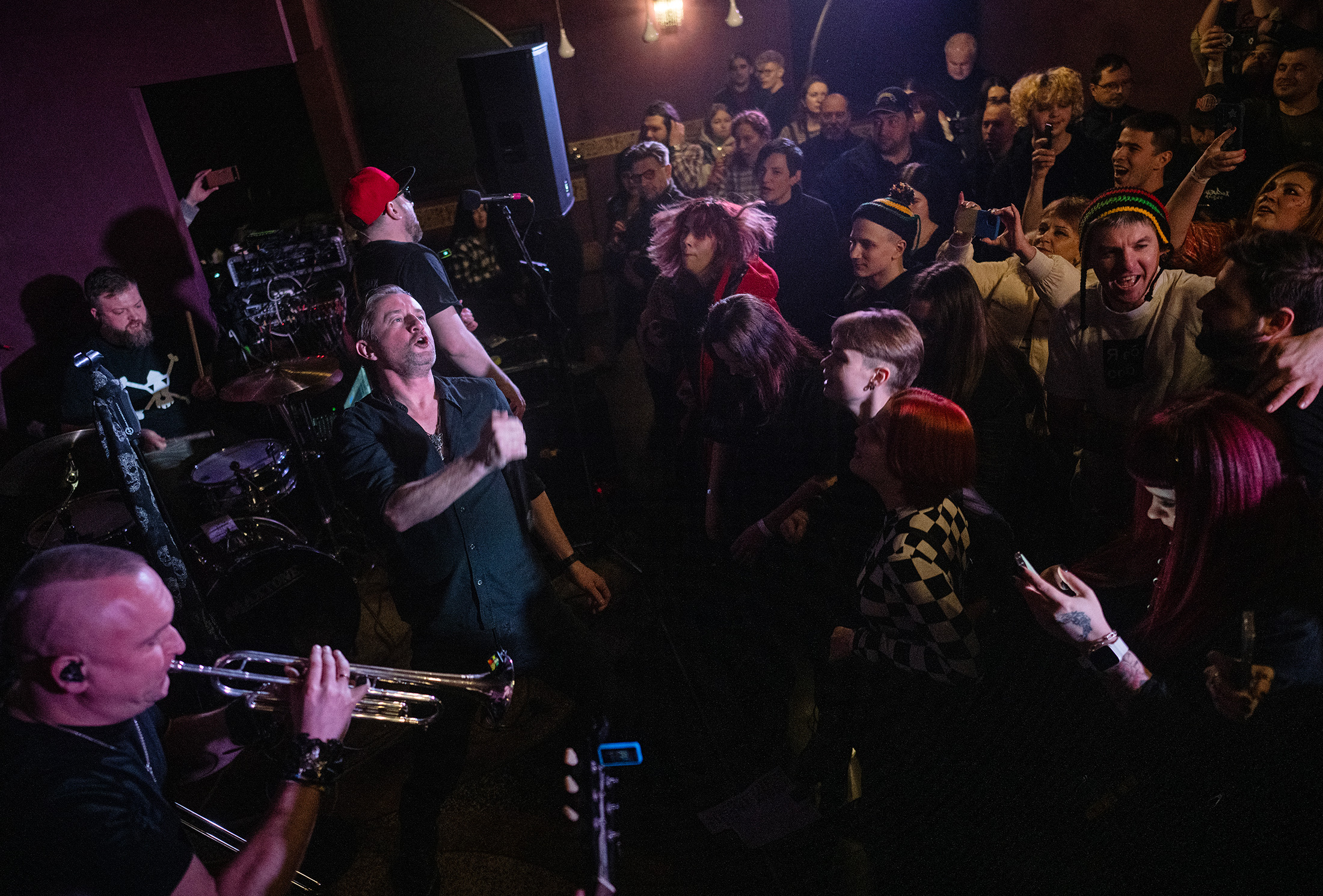 Zhadan在哈尔科夫的一场活动中表演。摄影师:Lynsey Addario/Getty Images现在是三月,在乌克兰中央基辅一个时尚工作空间的主舞台上,乌克兰最著名的现存诗人谢尔盖·扎丹在即兴表演,一名贝斯手在他身后跟着节奏。角落里的大屏幕播放着战场上的实时无人机画面,观众中有当地文化界人士、士兵和几位乌克兰最富有的公民,还有一个由Babenko帮助建立的无人机工业复合体的主要支持者。