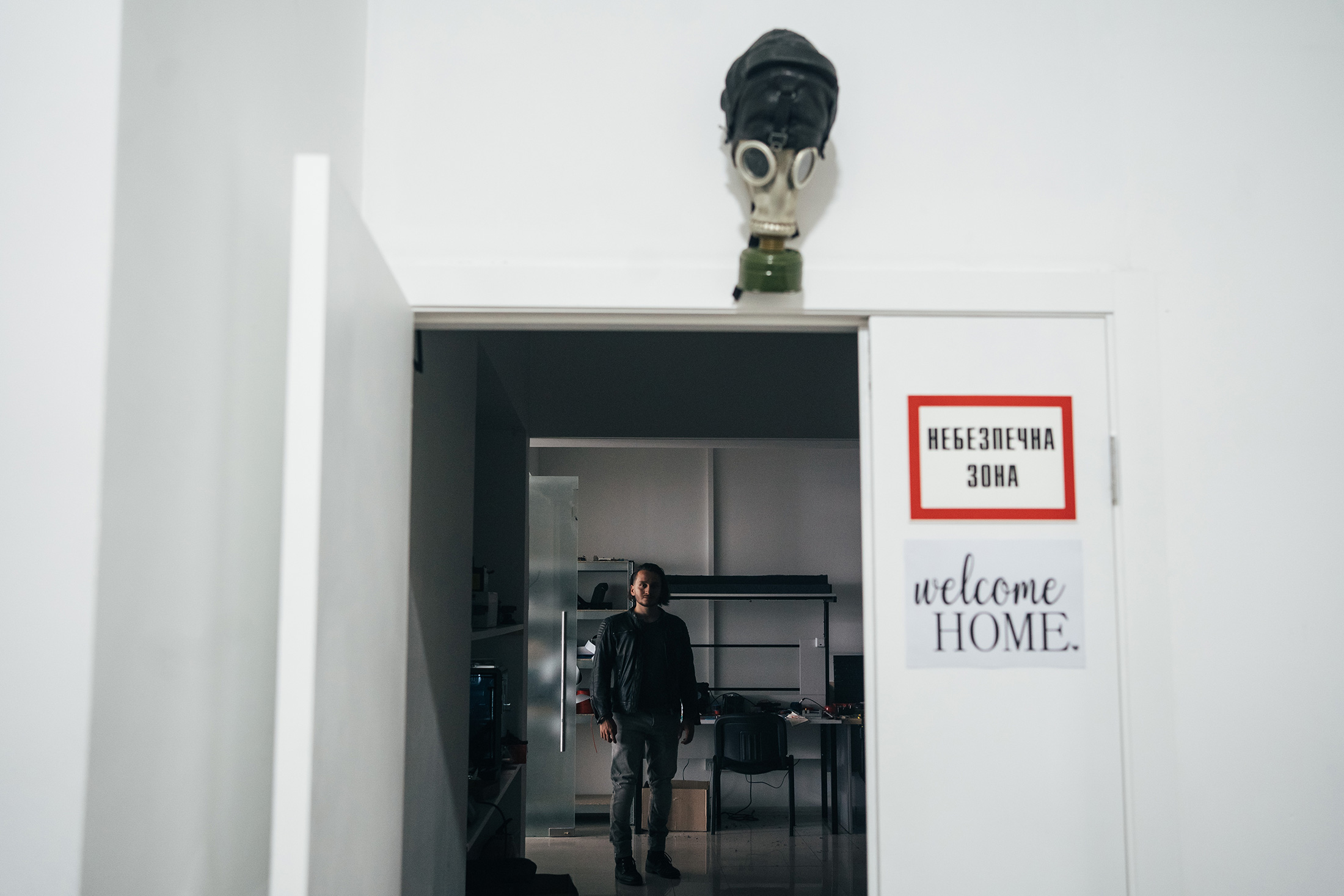 Vyriy办公室门口的标志写着“危险区”。摄影师:Anastasia Vlasova for Bloomberg Businessweek对于巴本科来说,他旋转火焰的日子已经成为一个逐渐消逝的记忆。在工厂轮班后,巴本科在True Price用餐,这是一家根据顾客需求设定入场价格的连锁店(有点像餐厅的高峰定价)。在吃着泰式炒虾卷饭面时,巴本科说,他花了很多时间穿过军事检查站,官员们已经认出了他的本田摩托车,并自动放行他。“我每个月都会尝试去前线,”他说。
