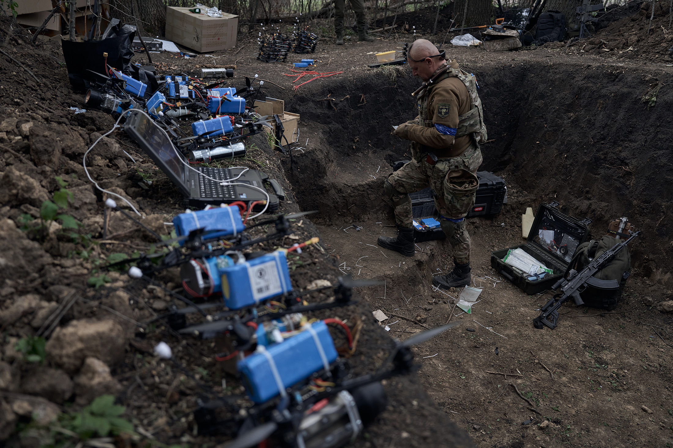 至少在这里,无人机携带的是水瓶而不是爆炸物。这些载具毫无困难地穿越了三月的暴风雪。每架飞行3公里并返回停机坪并卸载的时间只需几分钟。Sheremet对设计感到满意,但希望有更多这样的无人机。“乌克兰生产的无人机比俄罗斯少。俄罗斯与中国接壤,他们只是购买现成的无人机,”他说。“我们在技术水平上并没有输,但我们在数量上输了。”