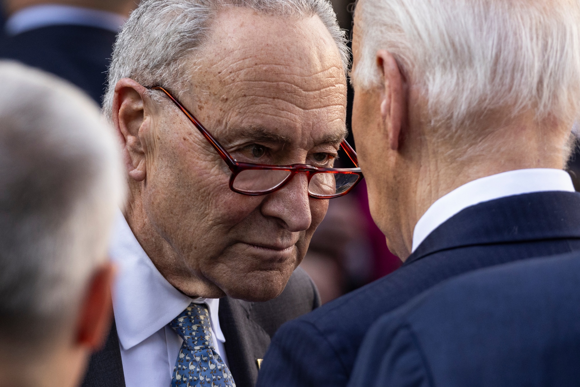 查克·舒默和乔·拜登在五月份在白宫举行的活动中。