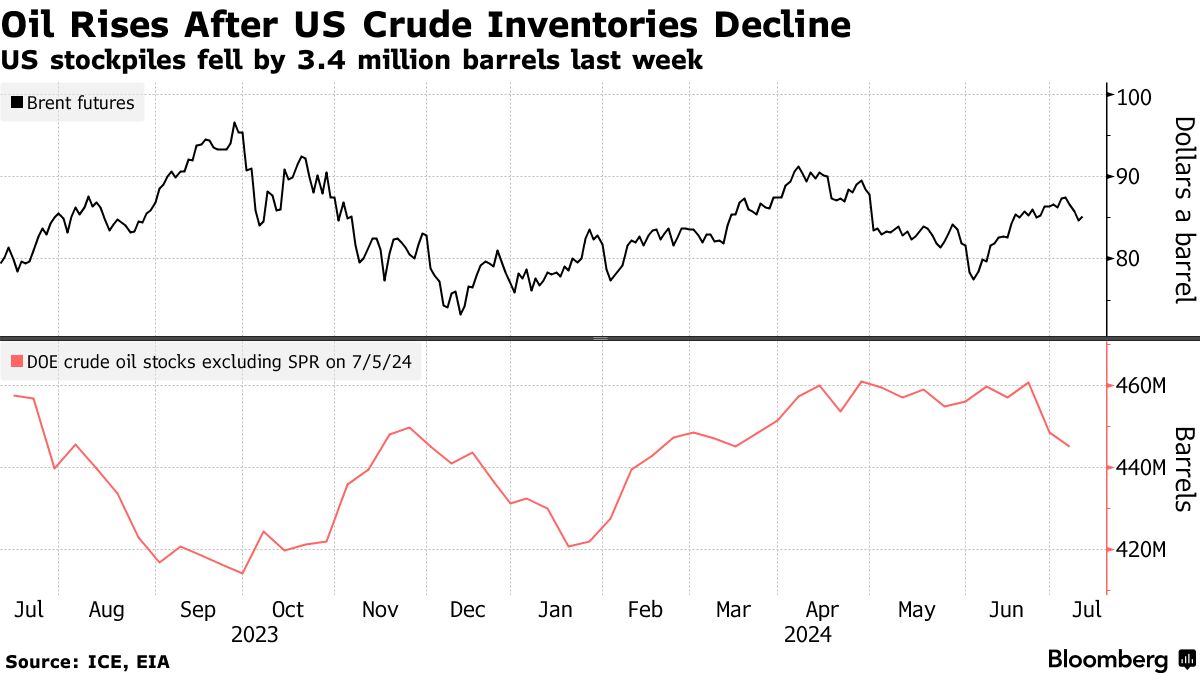 全球原油基准布伦特在周三上涨0.5%后,上涨至每桶85美元以上,西德克萨斯中质原油接近每桶82美元。上周美国全国原油库存减少340万桶,喷气燃料和汽油消耗量指标均上升,夏季旅行季节持续。