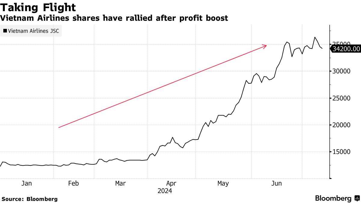 一次意外的盈利回归推动了越南航空公司股份有限公司成为今年全球表现最佳的航空公司股票,摆脱了破产风险,因为公司的疫情后复苏终于加速。