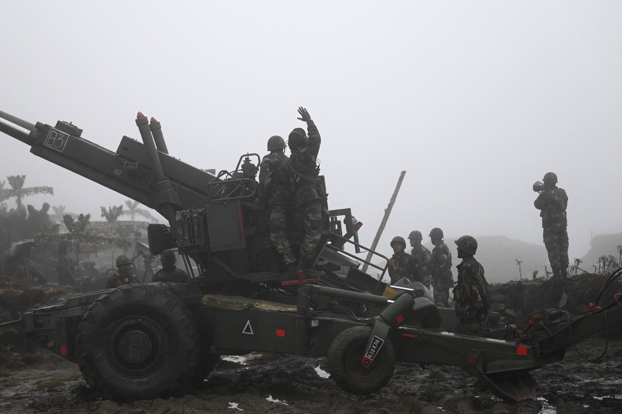 印度军队士兵展示了2021年在印度阿鲁纳恰尔邦与中国实际控制线附近摆放博福斯炮的位置。摄影师:Money Sharma/AFP/Getty Images### 5. 印度-中国边境冲突的历史是什么?