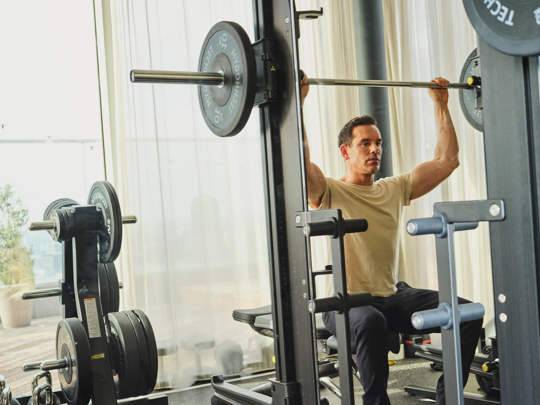 Angermayer在他家的健身房里。摄影师:Kate Peters for Bloomberg BusinessweekAngermayer正在从他在伦敦市中心利物浦车站附近的办公室迅速走到他附近的顶层公寓。在一个拐角处,他停下来问一个同事:“我们在哪里?”Angermayer从不步行一英里的通勤路程到他的办公室。他更喜欢在车上工作,并指出街上“小犯罪”的普遍存在。而且,天气通常很糟糕。现年46岁的他于2013年从德国搬到这座城市,这是他将他的第一家公司Ribopharma AG与一家美国竞争对手合并十年后的事。他对英国没有任何忠诚度——他计划很快搬家,确切的地点尚未确定,因为政府取消了对非居民持有的海外账户的税收避风港。