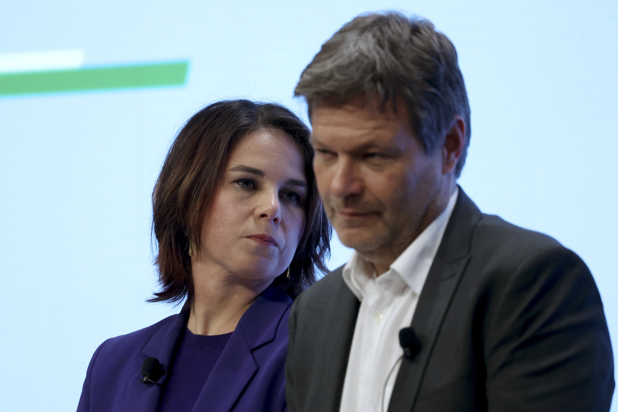 安娜莱娜·贝尔博克和罗伯特·哈贝克。图片:利萨·约翰森-科皮茨/彭博社她表示要“全力以赴”专注于自己的外交部长职责。面对动荡时期,她认为“作为我的‘国家政治责任’,我应该继续全力以赴地致力于我的任务,建立信任、合作和可靠的结构 — 与全球和欧洲的众多合作伙伴一起,他们依赖于此。”