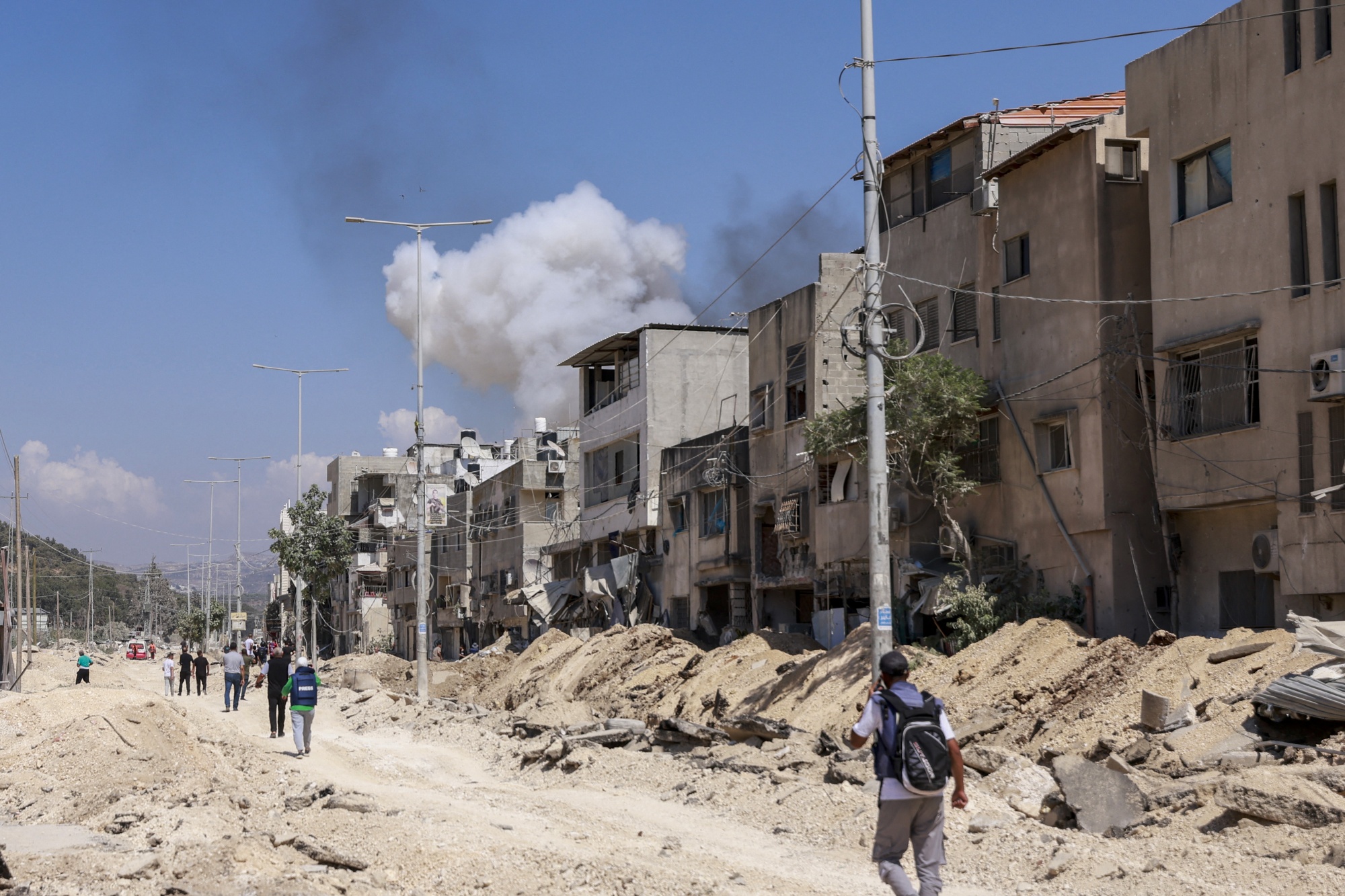 人们在7月9日走在被严重破坏的占领西岸的街道上。